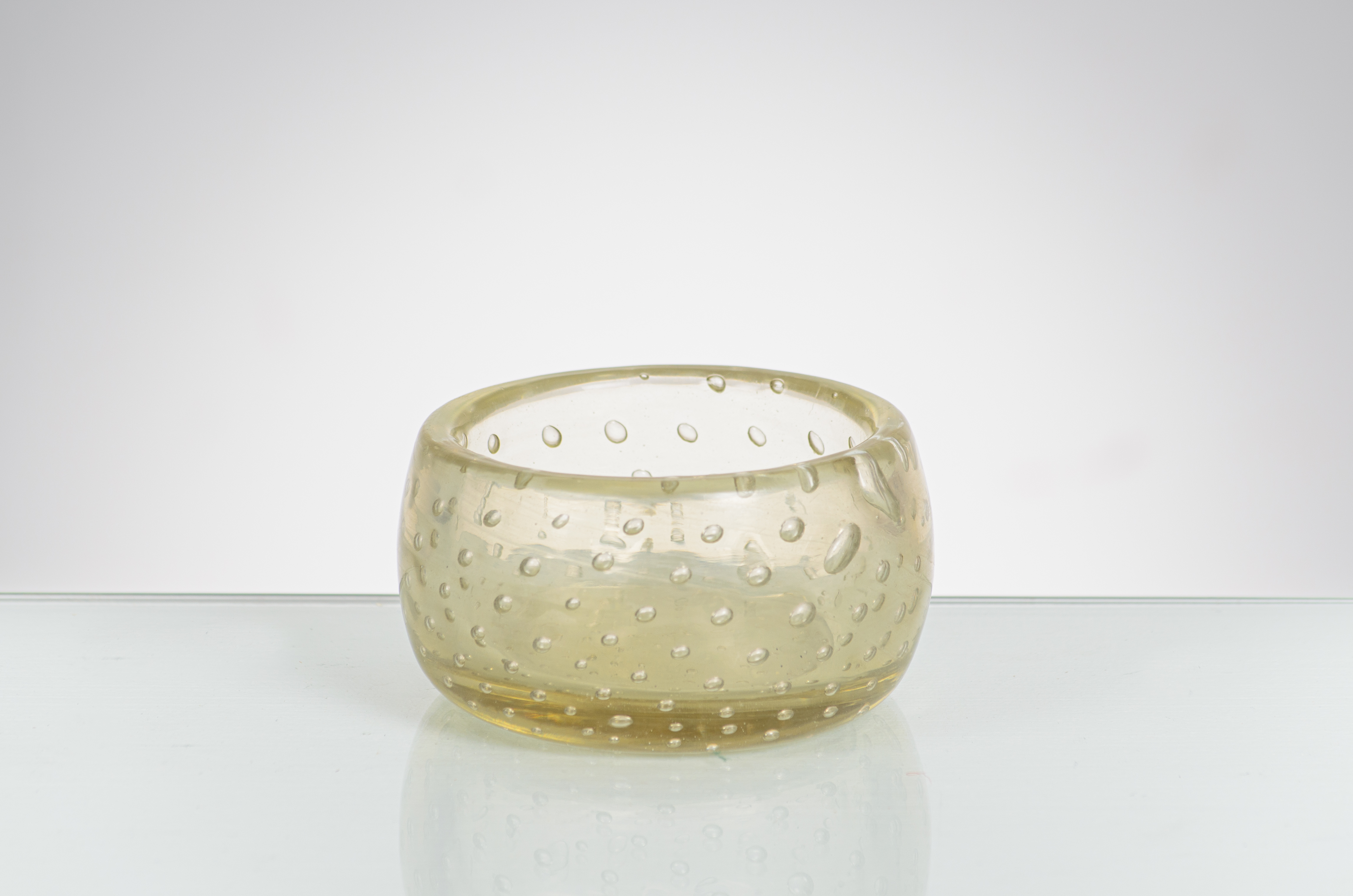 Coppa circolare in cristallo iridato e bolle regolari.