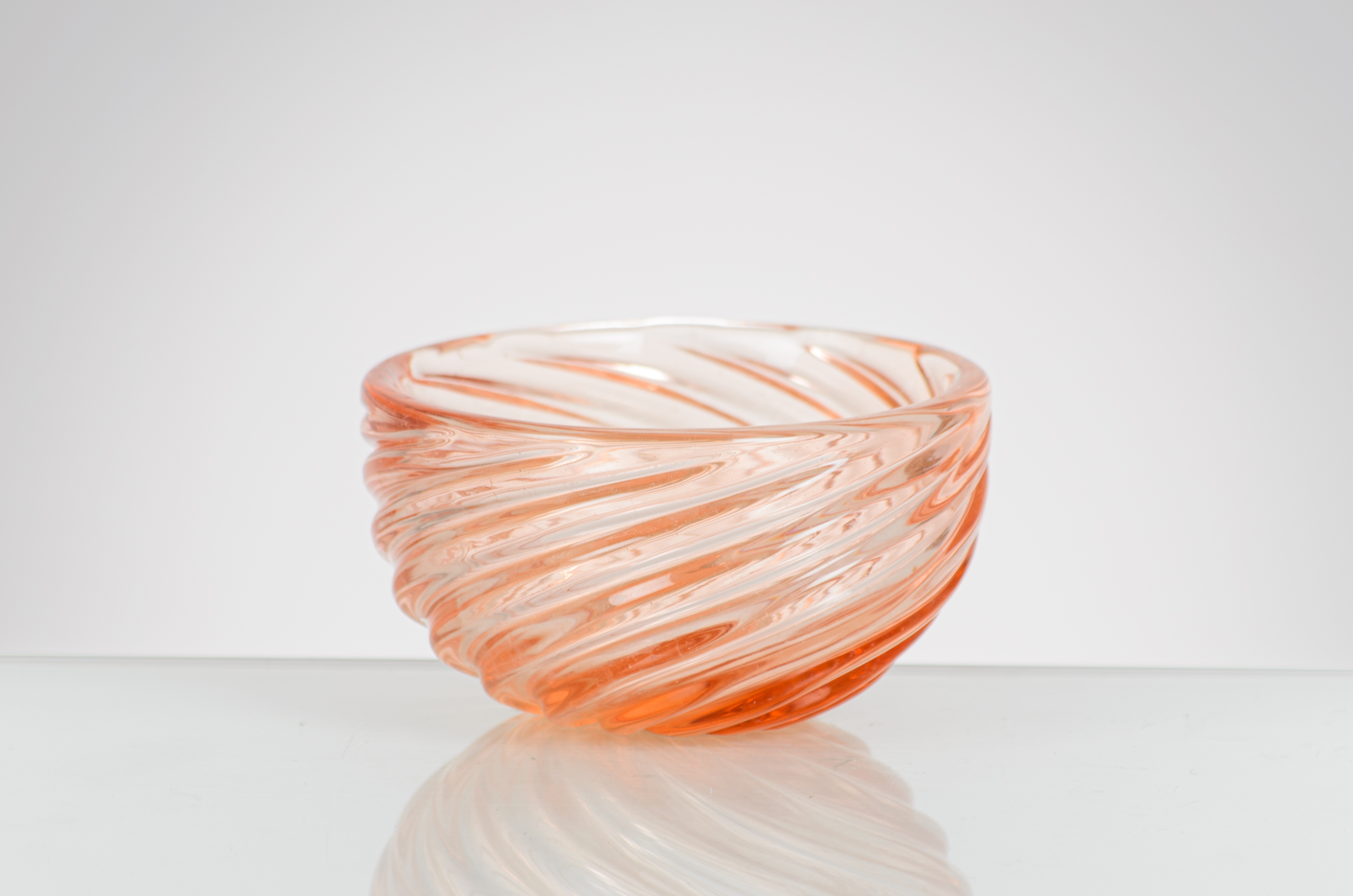Coppa in vetro 'Diamante' a sezione polilobata colore rosato, bocca circolare. Marca ad acido “Venini murano”.