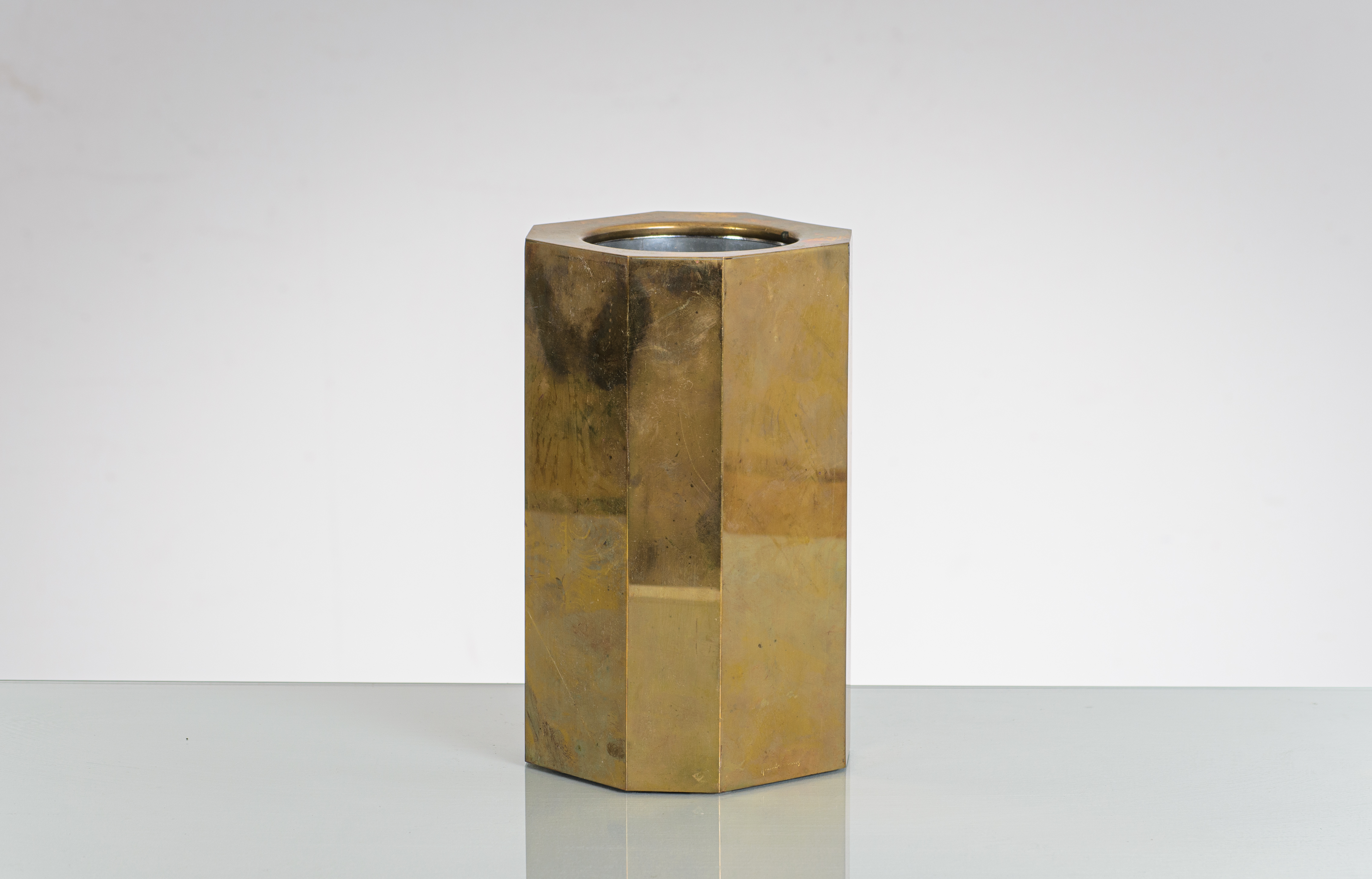 Secchiello porta bottiglia in ottone, corpo ottagonale con bocca piana circolare. Firma incussa.