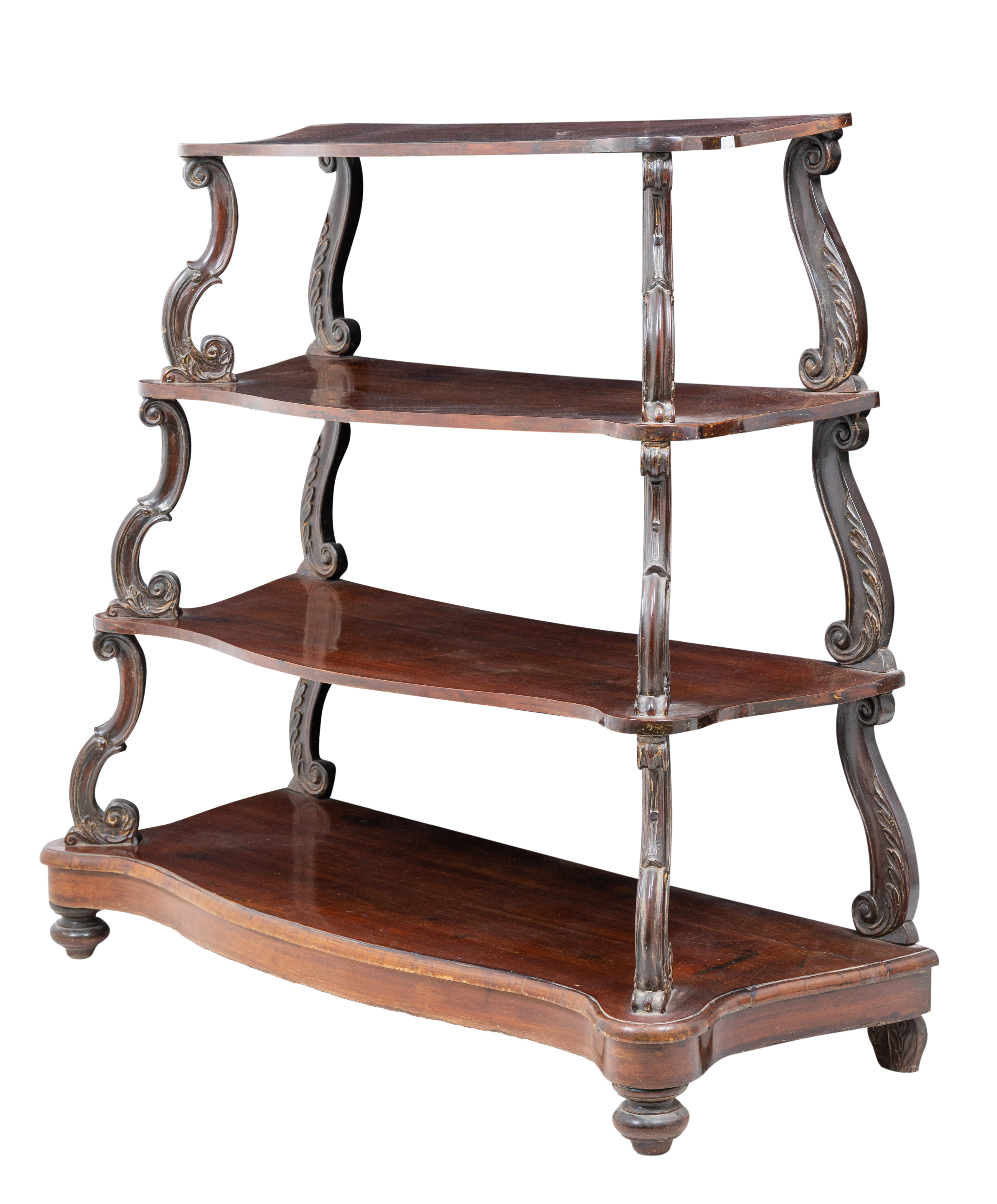 Etagere Luigi Filippo a quattro ripiani in legno di mogano.