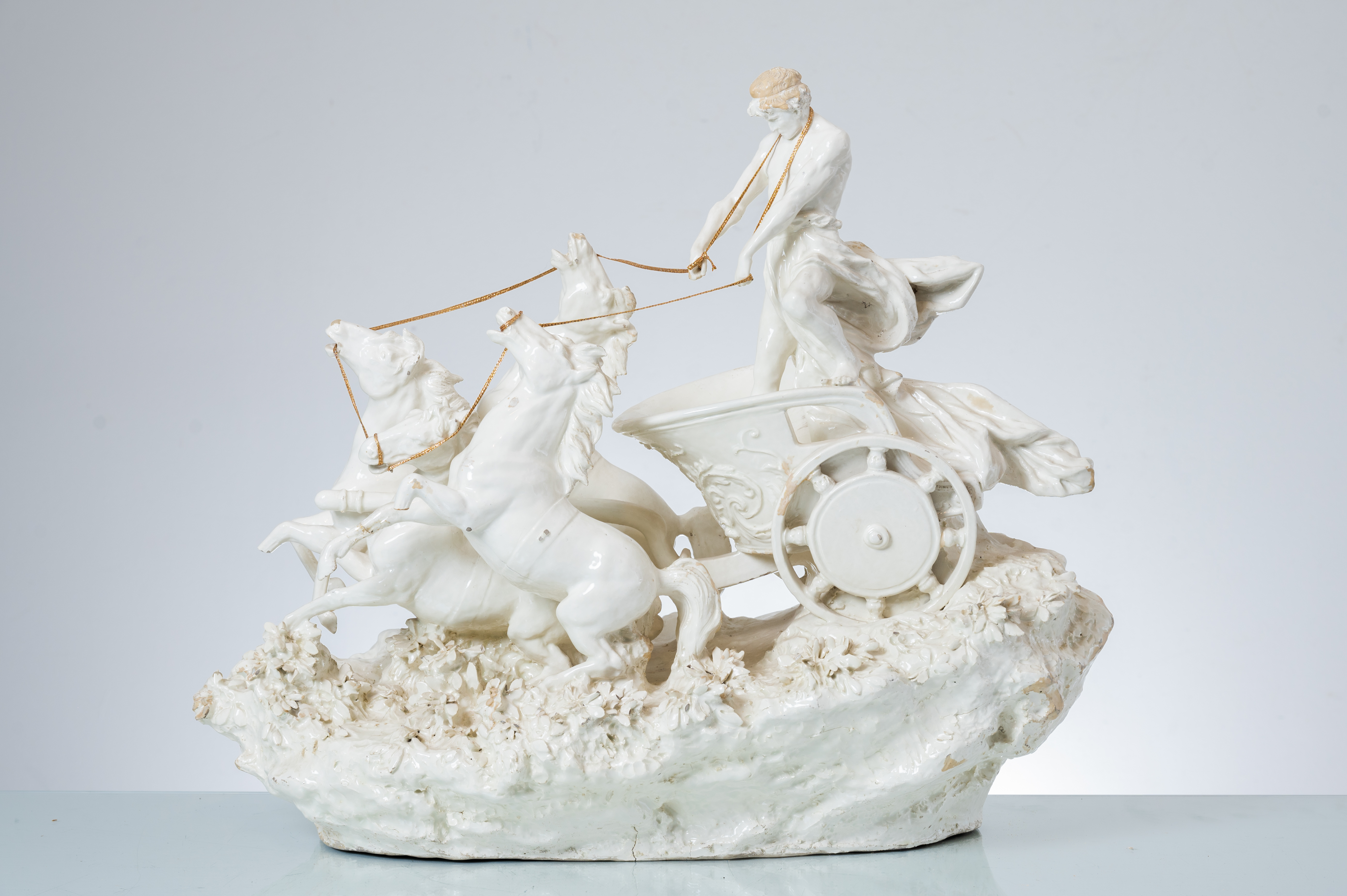Scultura in ceramica smaltata nei toni del bianco raffigurante "Fetonte che guida il carro del sole" (restauri e mancanze).