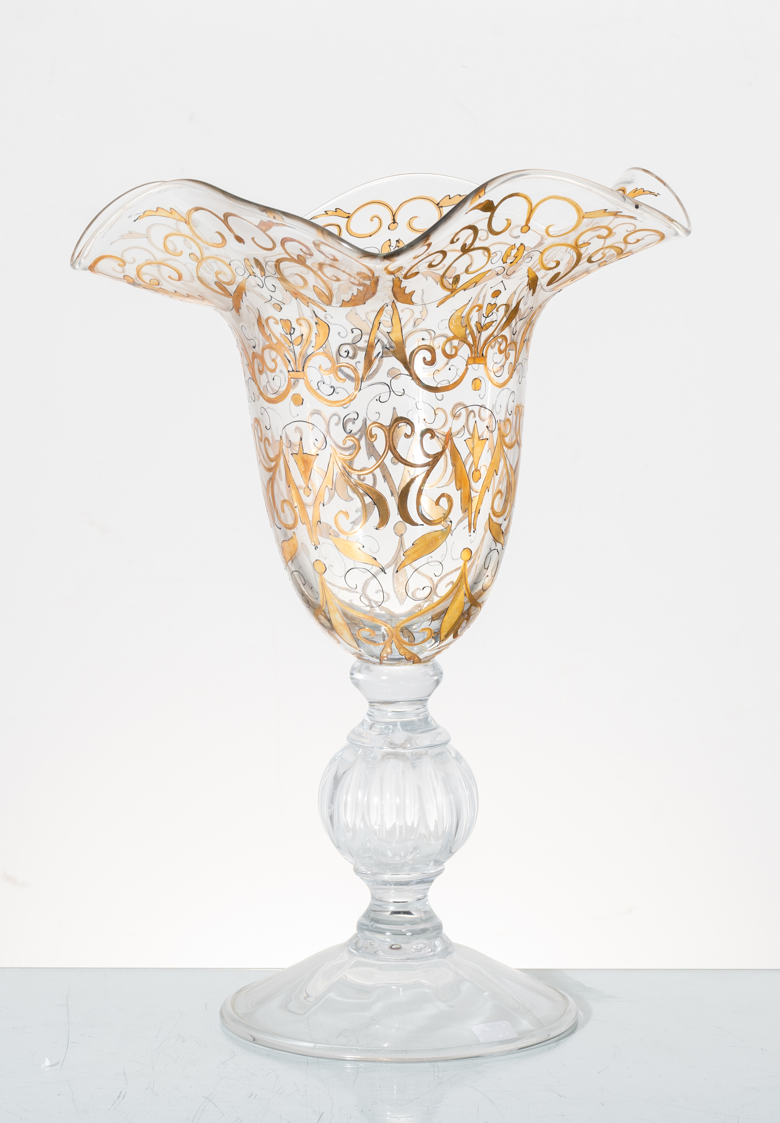 Grande vaso in vetro decorato e lumeggiato in oro.