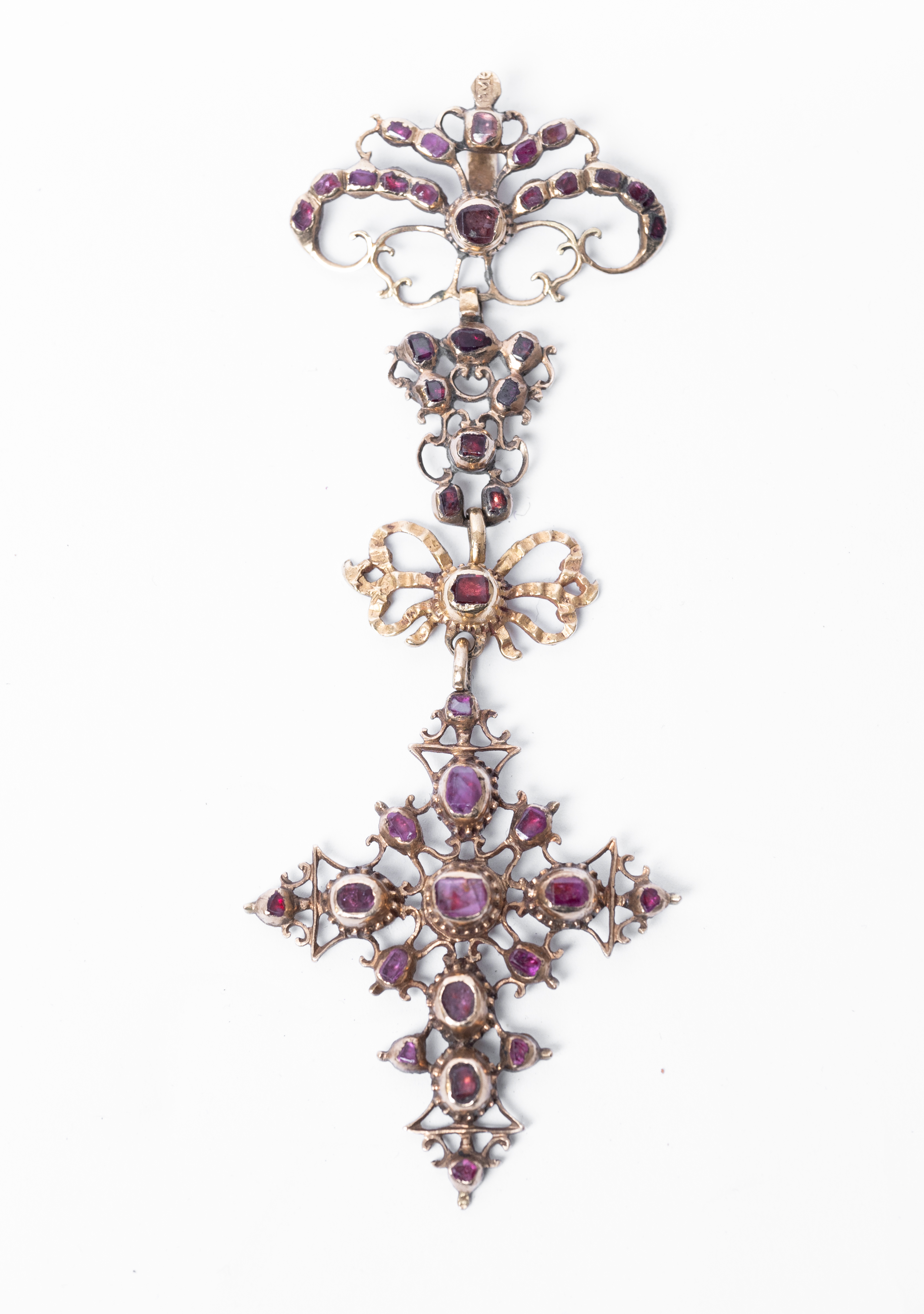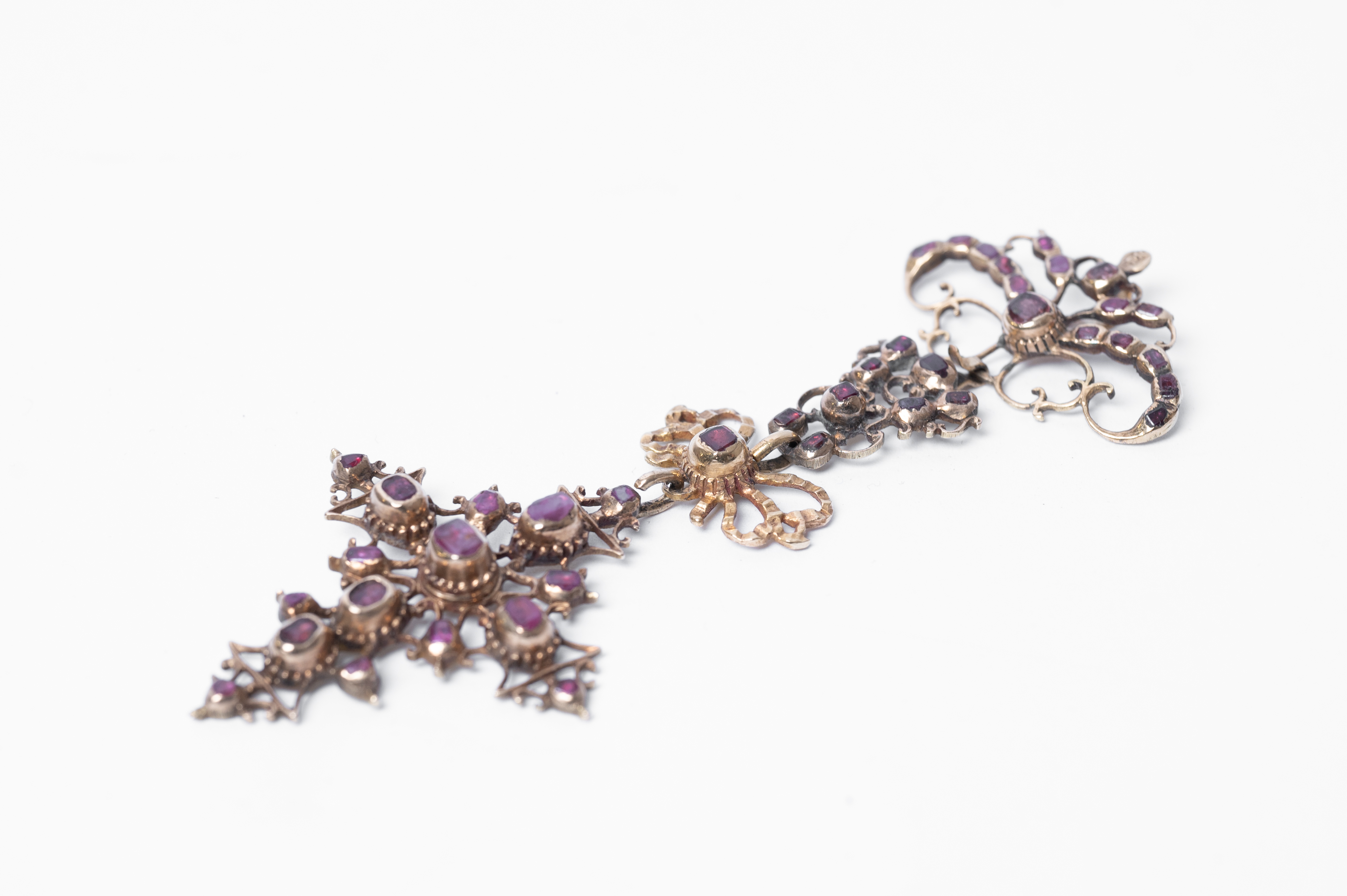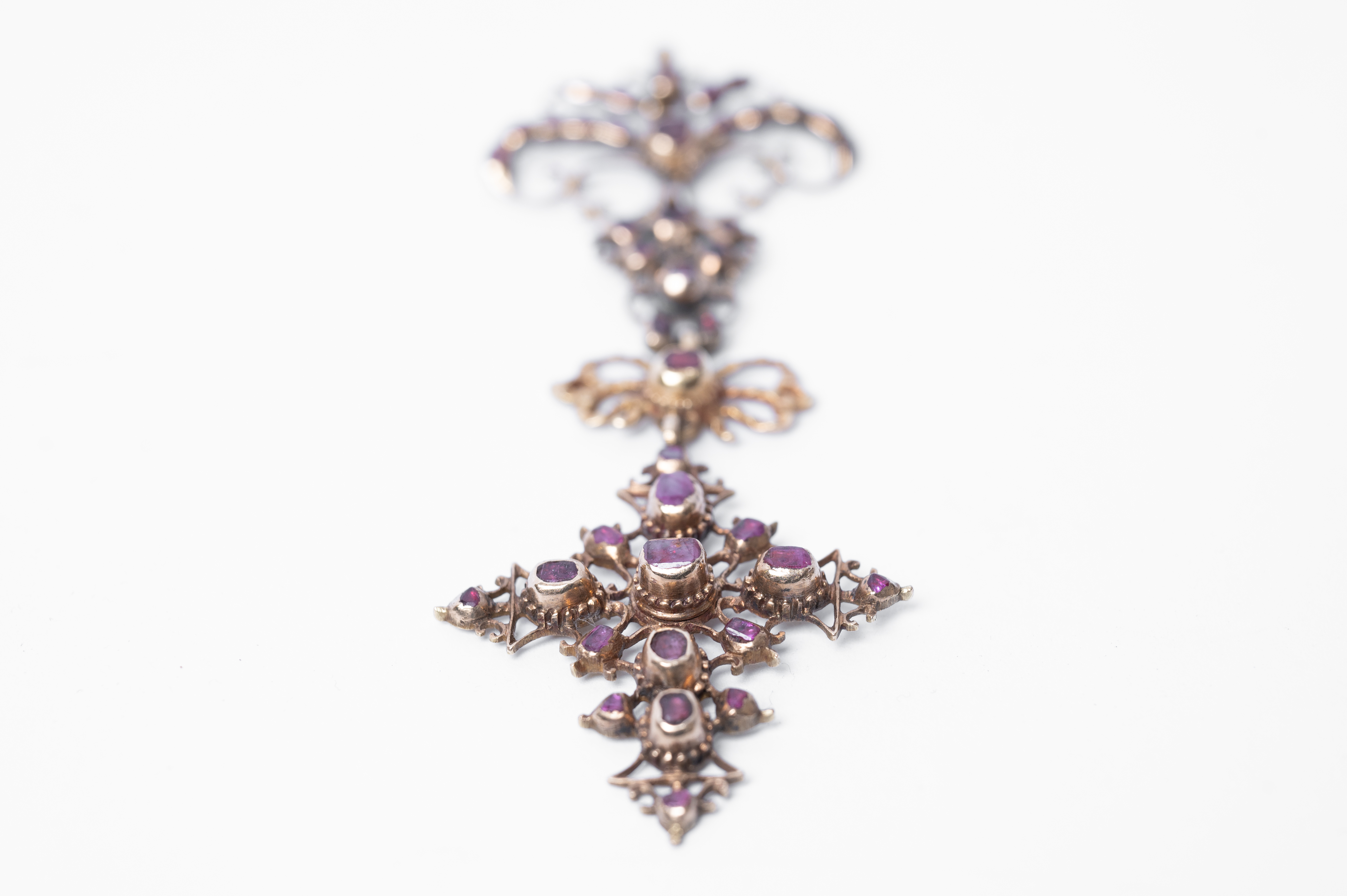 PENDENTE in oro giallo 12 KT con rubini ct. 0,50 peso di stima (g. 13,50).