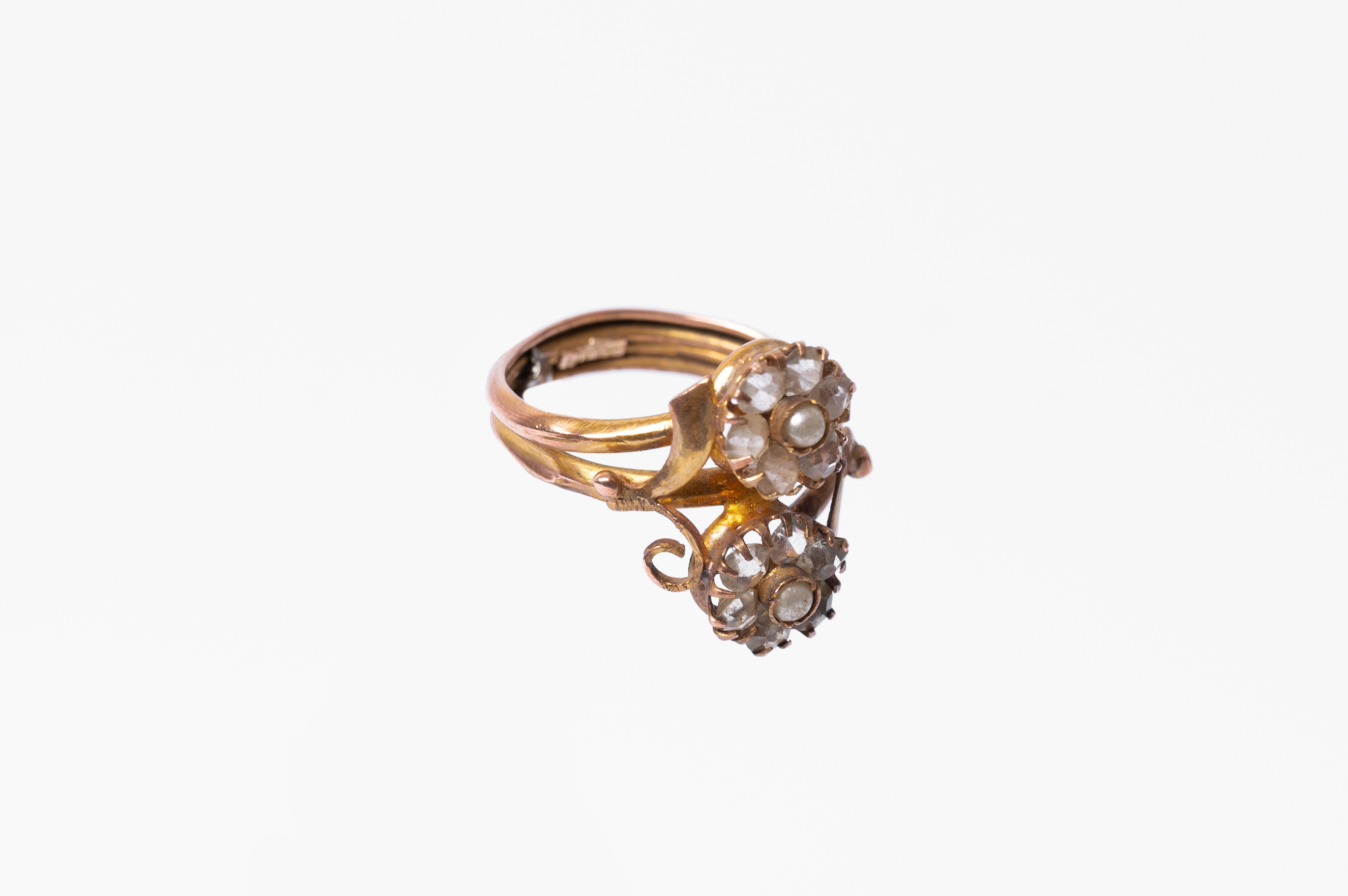 ANELLO in oro giallo 9 KT con perline e zaffiri bianchi