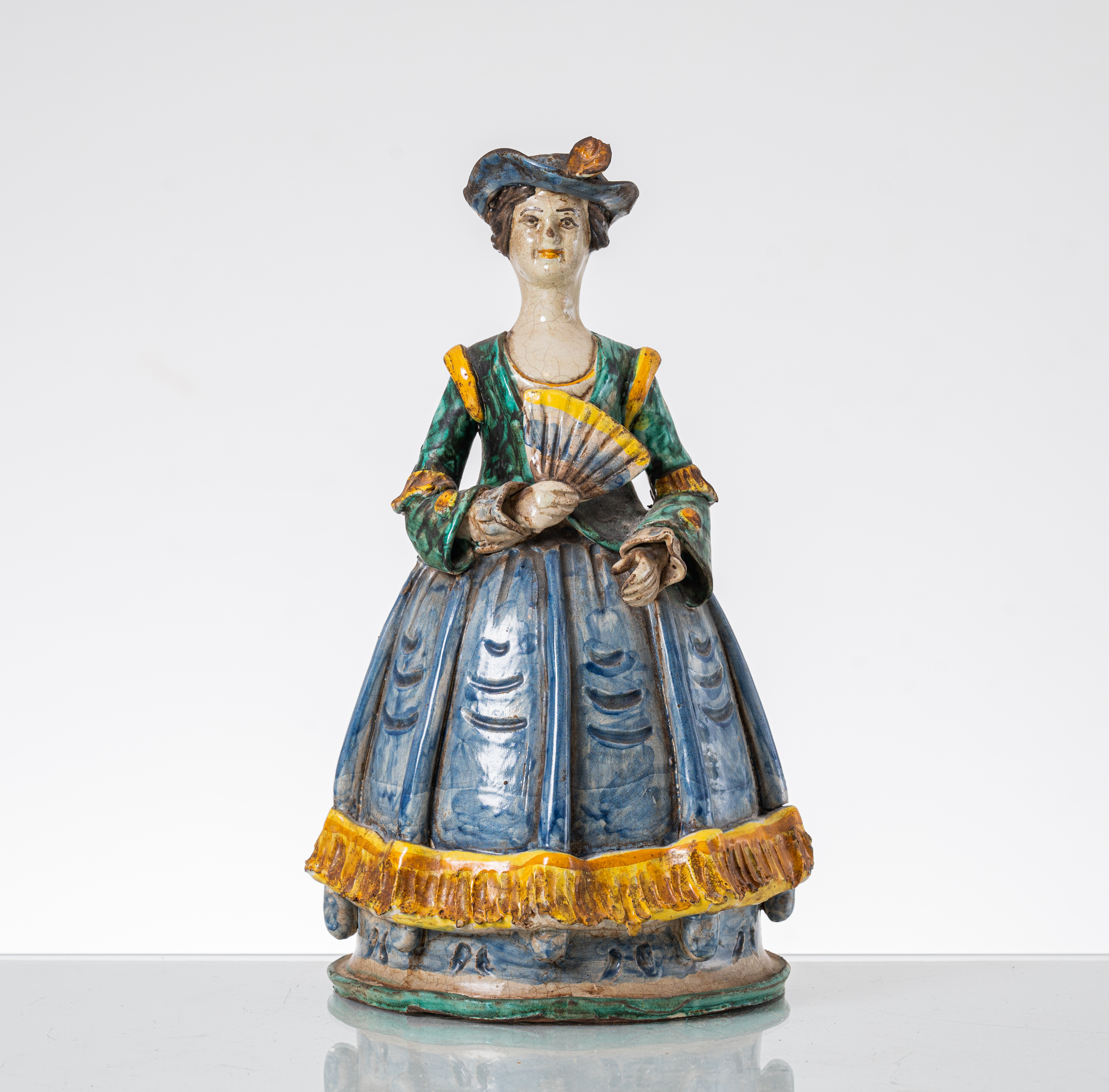 Lucerna in ceramica decorata e smaltata raffigurante "Gentildonna".
