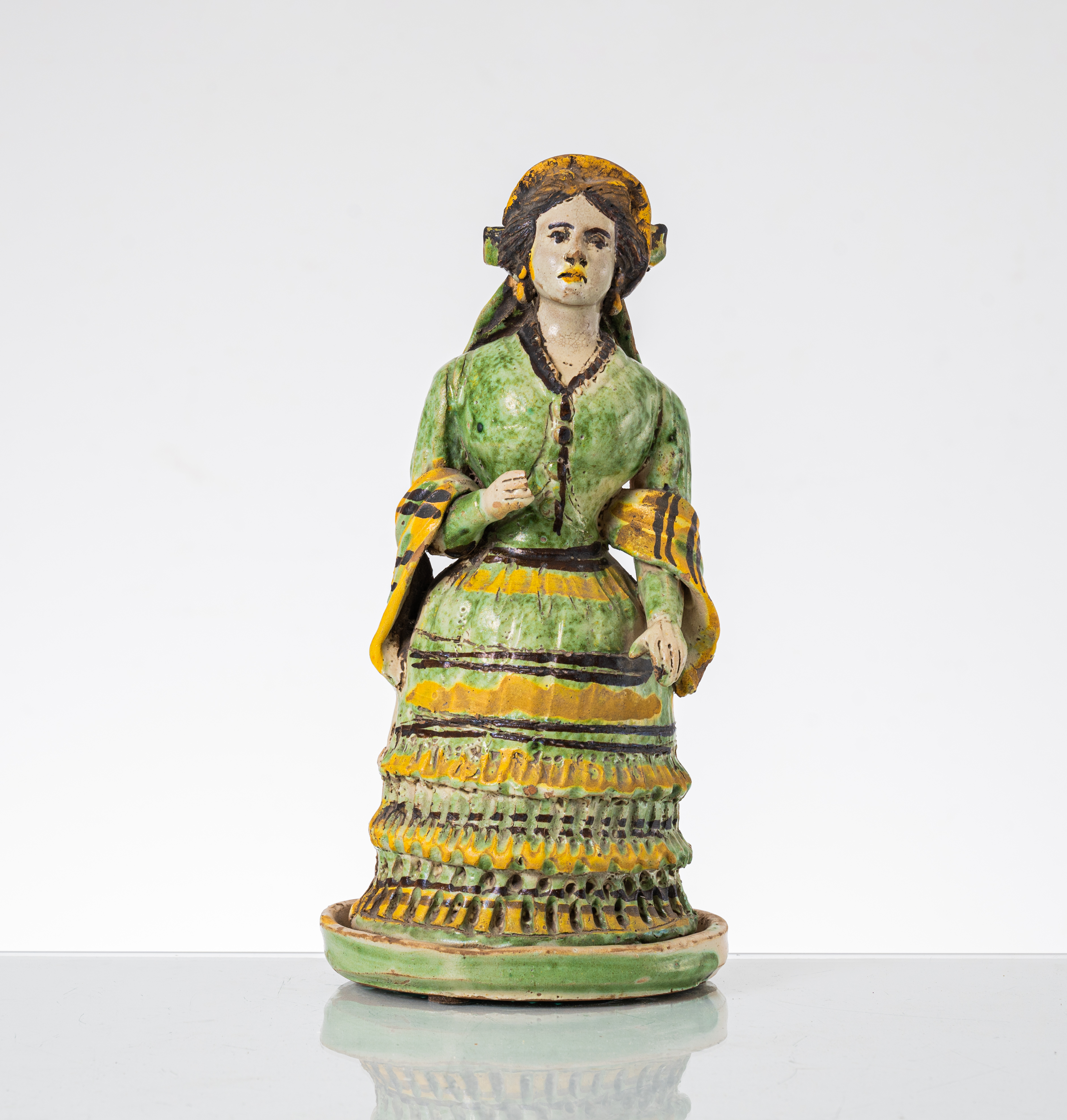 Lucerna in ceramica decorata e smaltata raffigurante "Gentildonna".