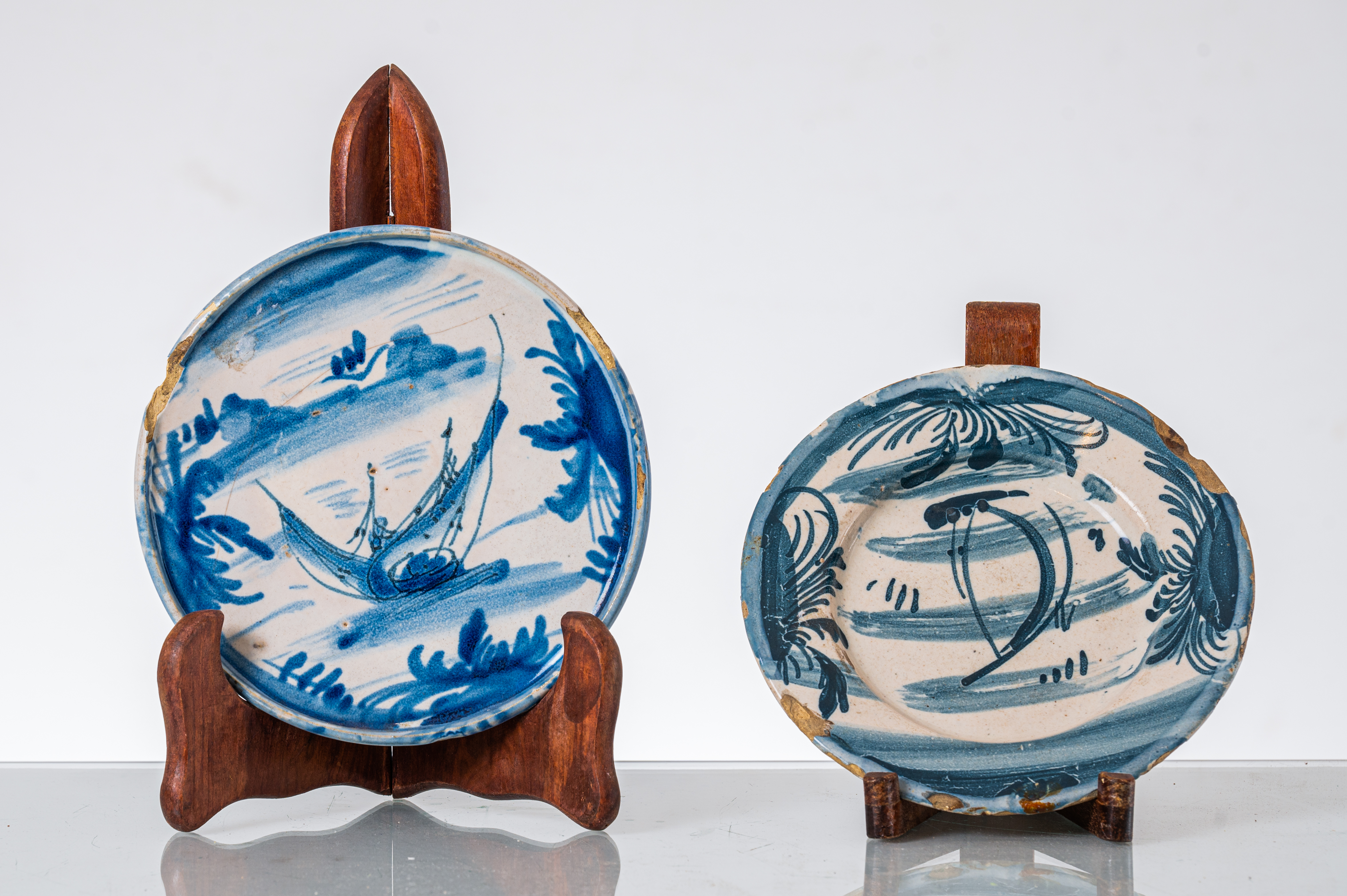 Piccola alzata e piatto in ceramica smaltata e decorata (usure).