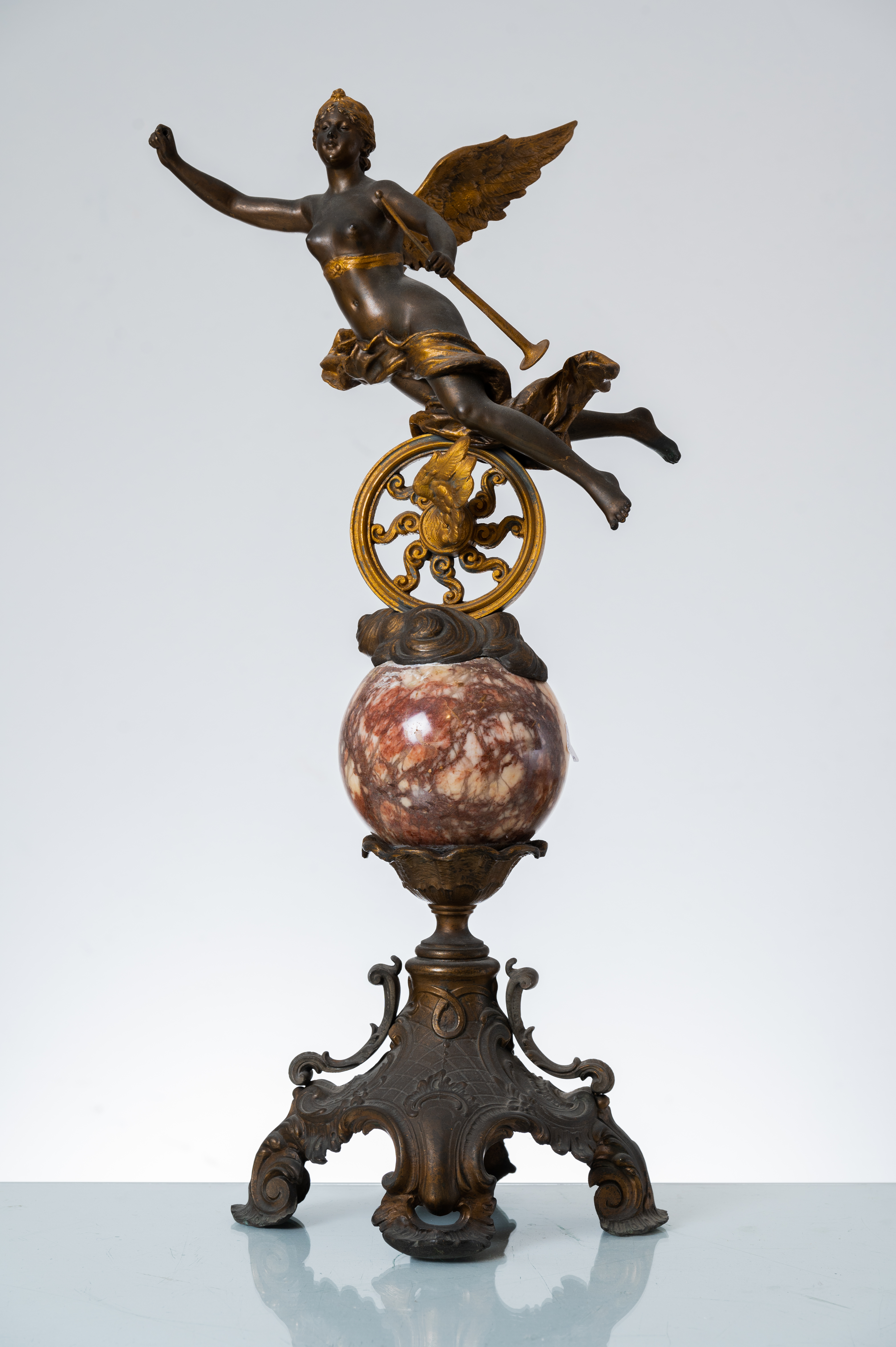 Scultura in metallo brunito e dorato raffigurante "Figura allegorica".