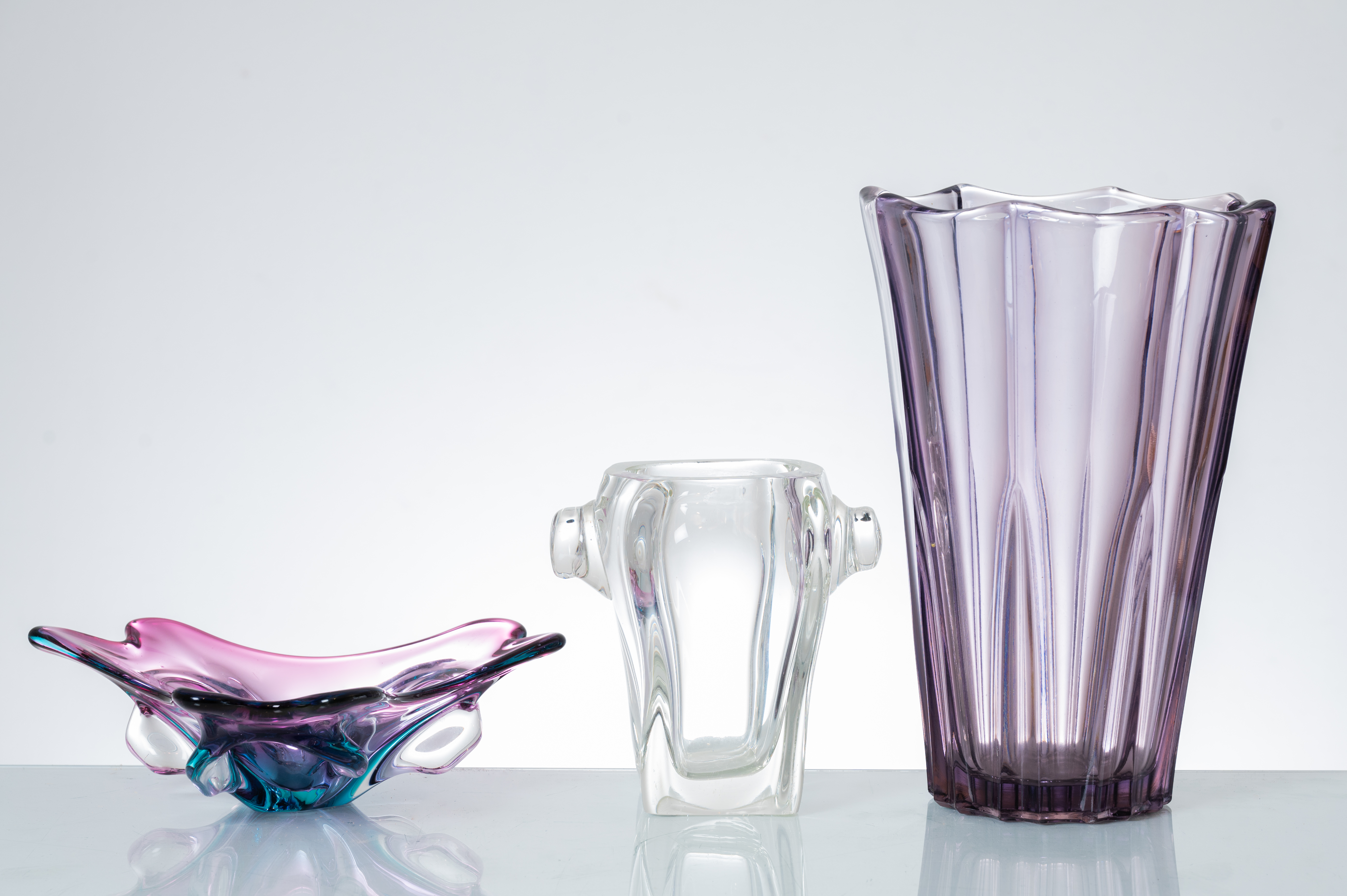 Vaso, portaghiaccio e svuotatasche in vetro colorato.