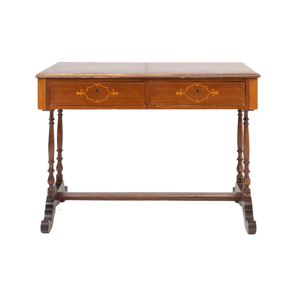 SCRITTOIO stile Luigi Filippo con due cassetti in legno di noce e tarsie in bosso.