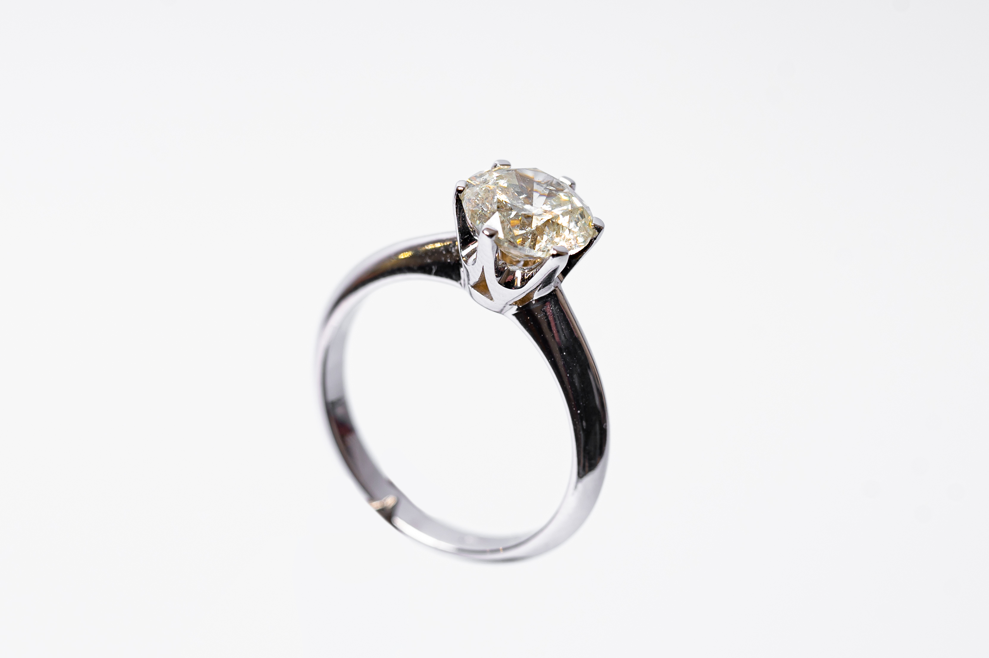 ANELLO in oro bianco 18 KT con diamante taglio brillante ct. 2,00 peso di stima J COLOR I2 (g. 4,57).