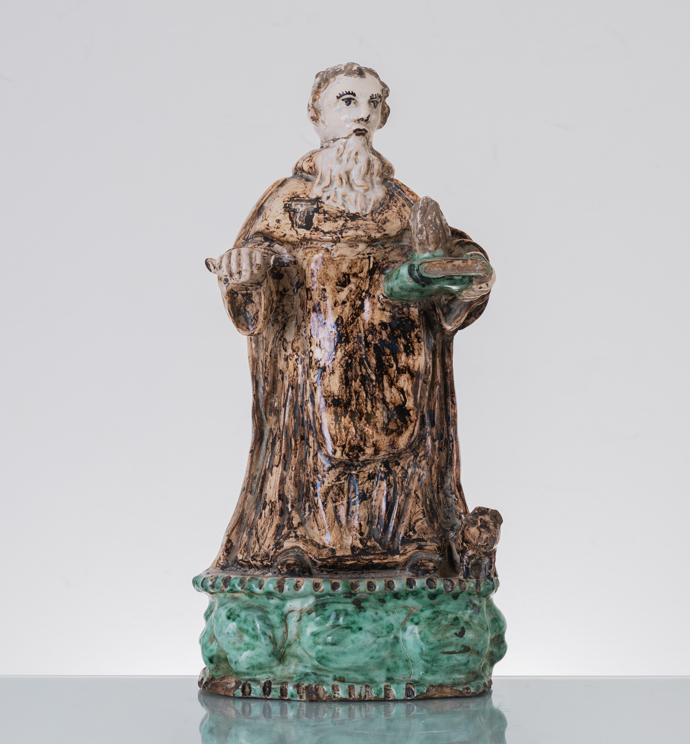 Scultura in ceramica smaltata e decorata policroma raffigurante "San Rocco" (usure e mancanze).