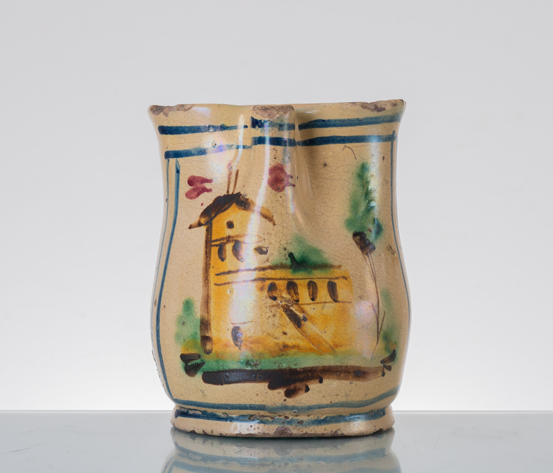 Cannata in ceramica smaltata e decorata (usure e mancanze).