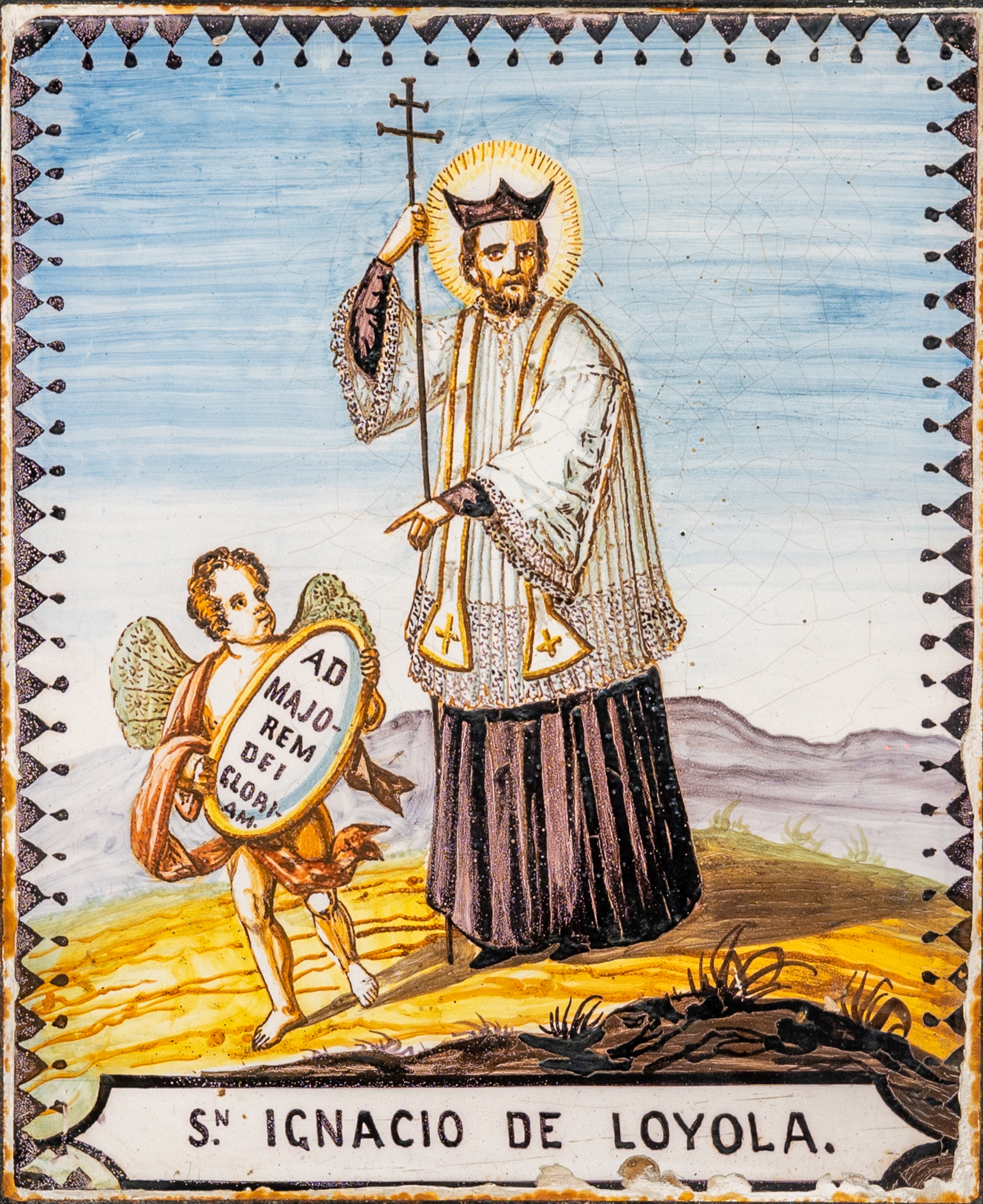 Pannello in ceramica smaltata e decorata raffigurante "Sant'Ignazio di Loyola".