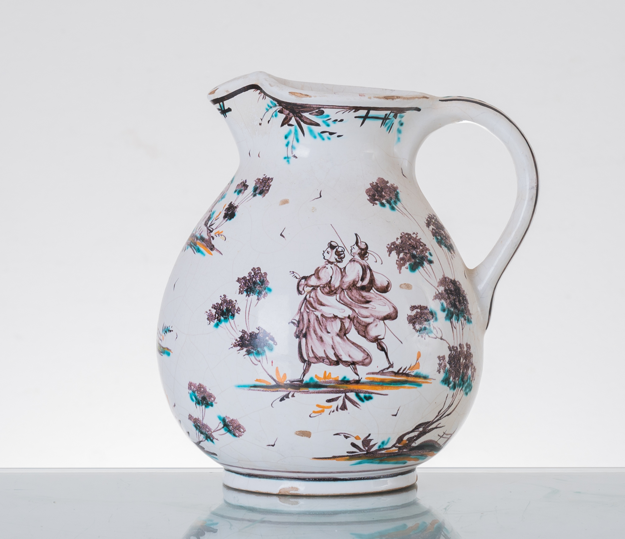 Brocca in ceramica smaltata e decorata.