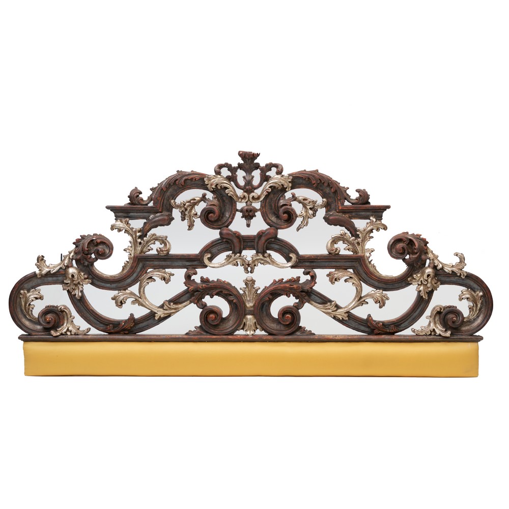SPALLIERA da letto in legno intagliato, laccato e argentato.