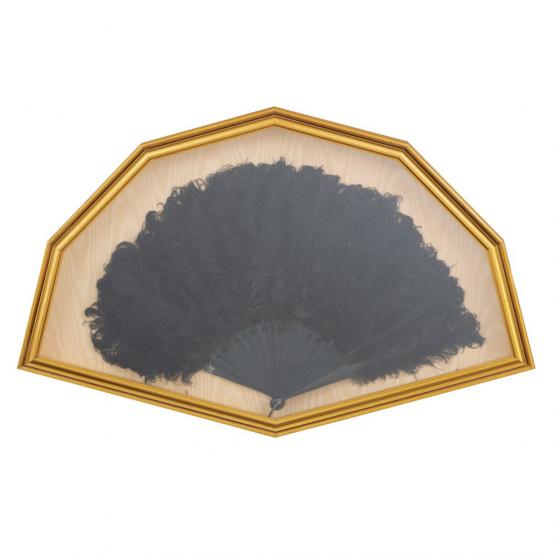 entro ventagliera, di cui due di piume ed uno in tessuto ricamato con filo dorato.