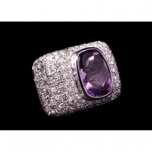 ANELLO in oro bianco 18 KT con brillanti ct. 6,00 e ametista
