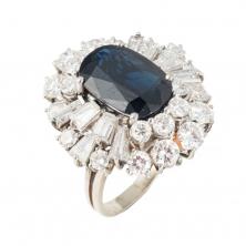 ANELLO in oro bianco con diamanti taglio misto e zaffiro