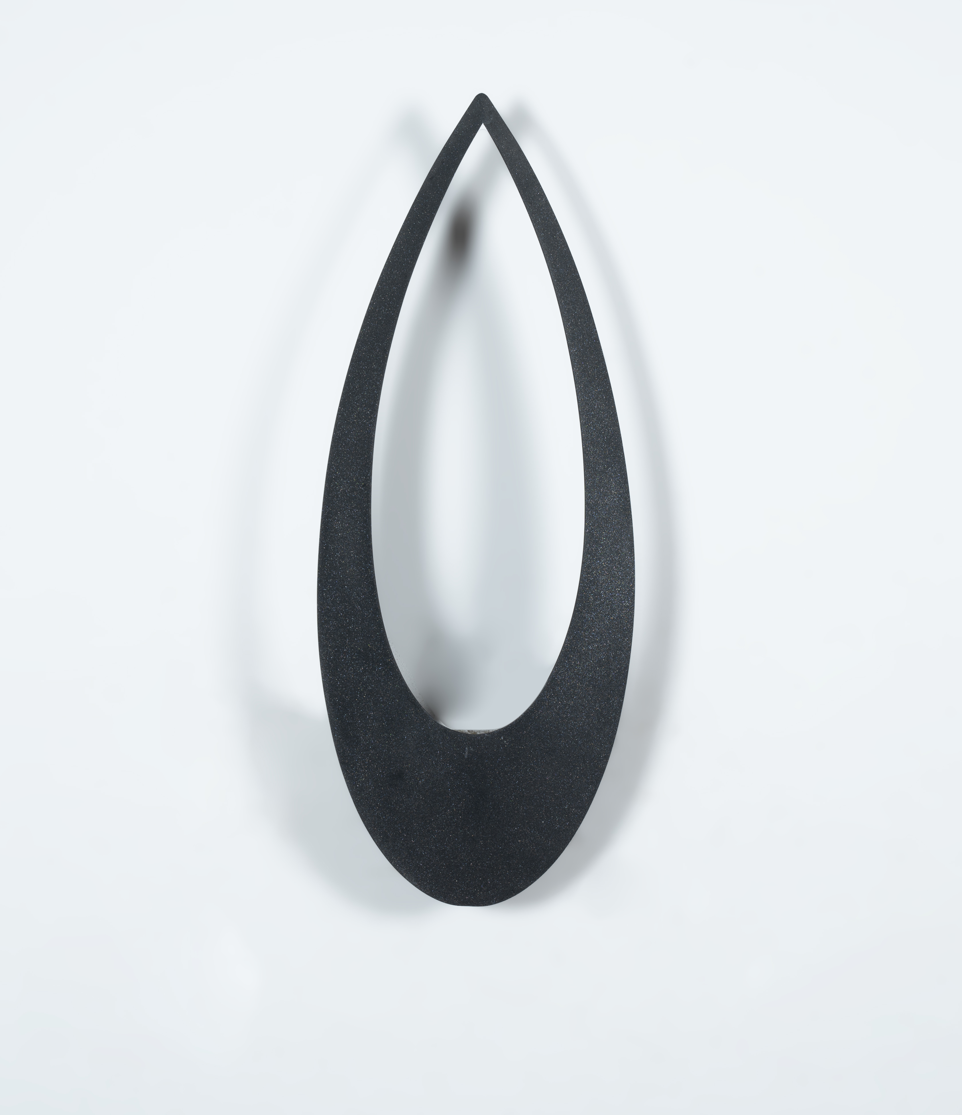 Lampada da parete ad una luce modello 'Blum' con diffusore a goccia in metallo verniciato nero opaco.