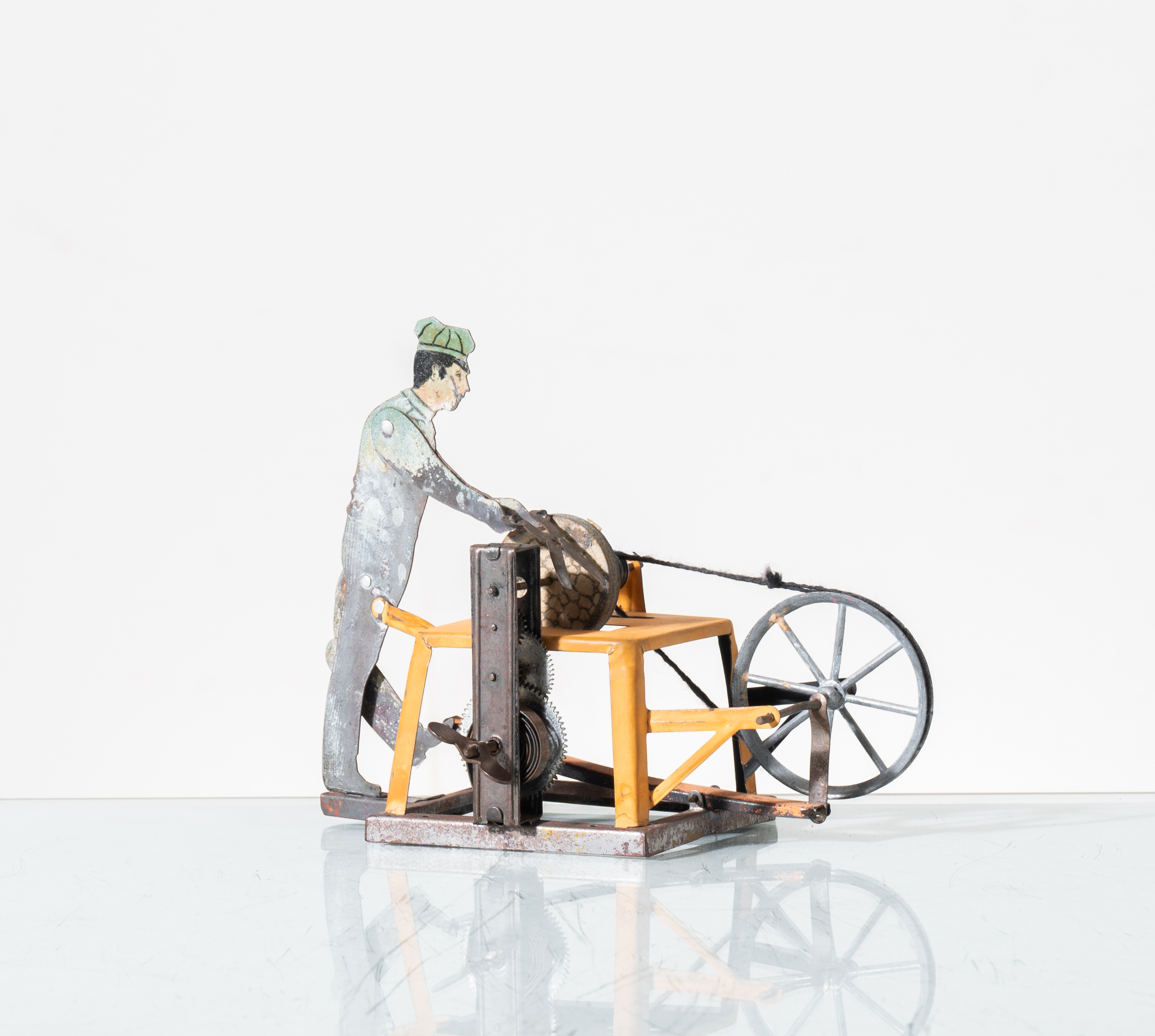 ANTICO GIOCATTOLO in latta con meccanismo a chiave (usure).