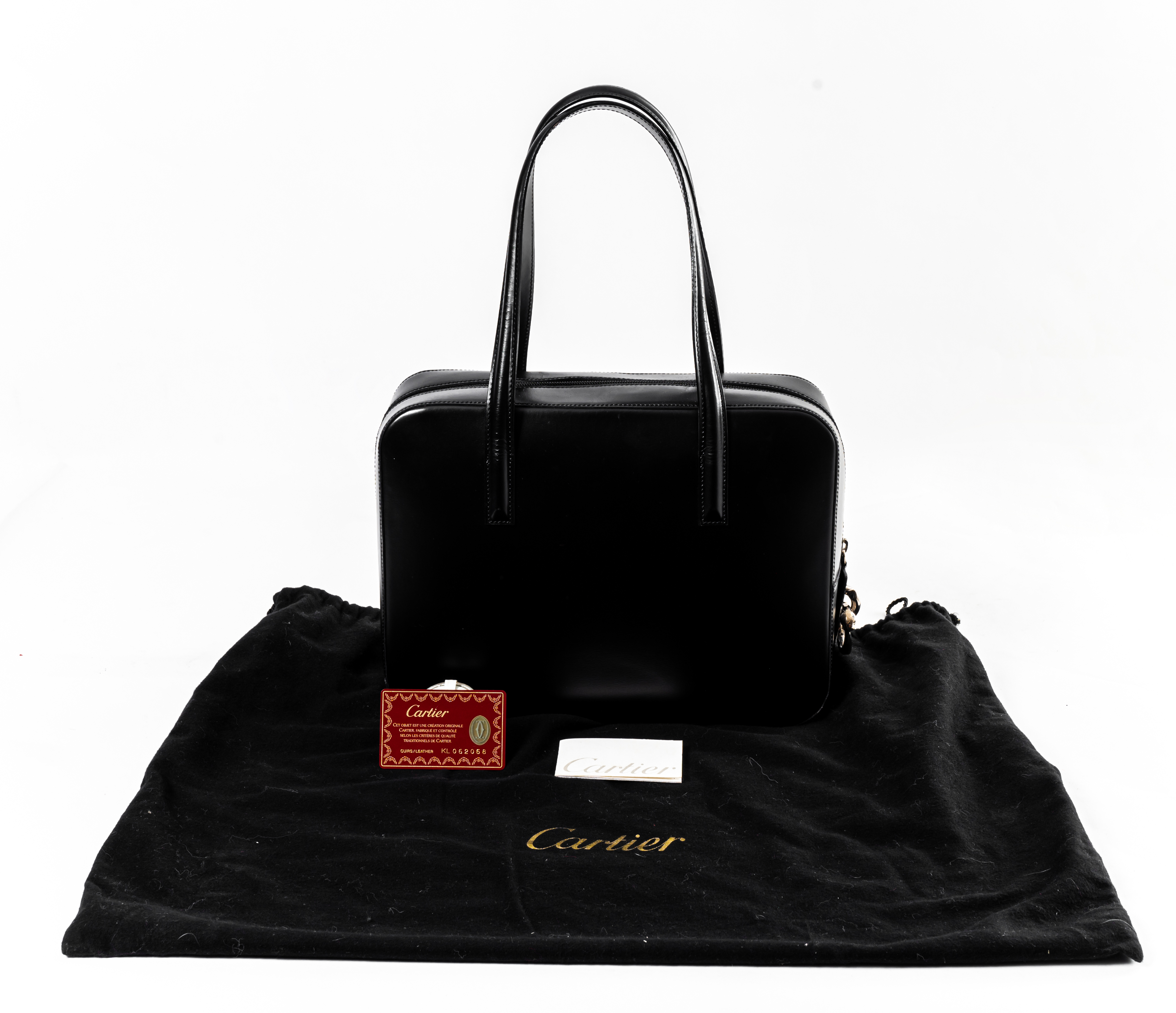 Borsa a mano della serie “Panthère” in pelle di vitello spazzolata nera, chiusura con cerniere sulla parte superiore con cursore e chiusura gioiello in metallo cromato, manici con imbottitura, tasca interna. Dust Bag e card identificativa. Lievi graffi. Marchio di produzione.