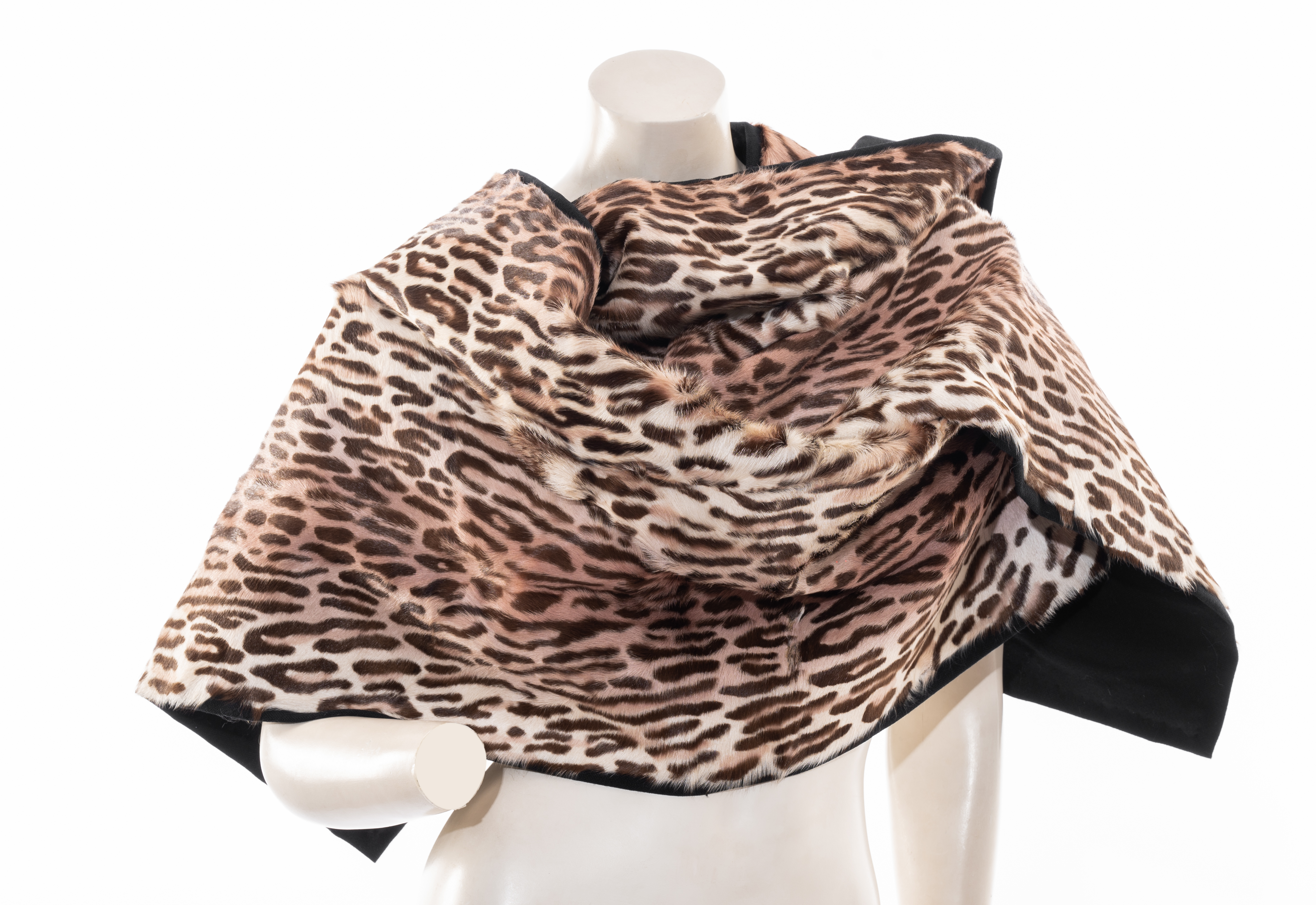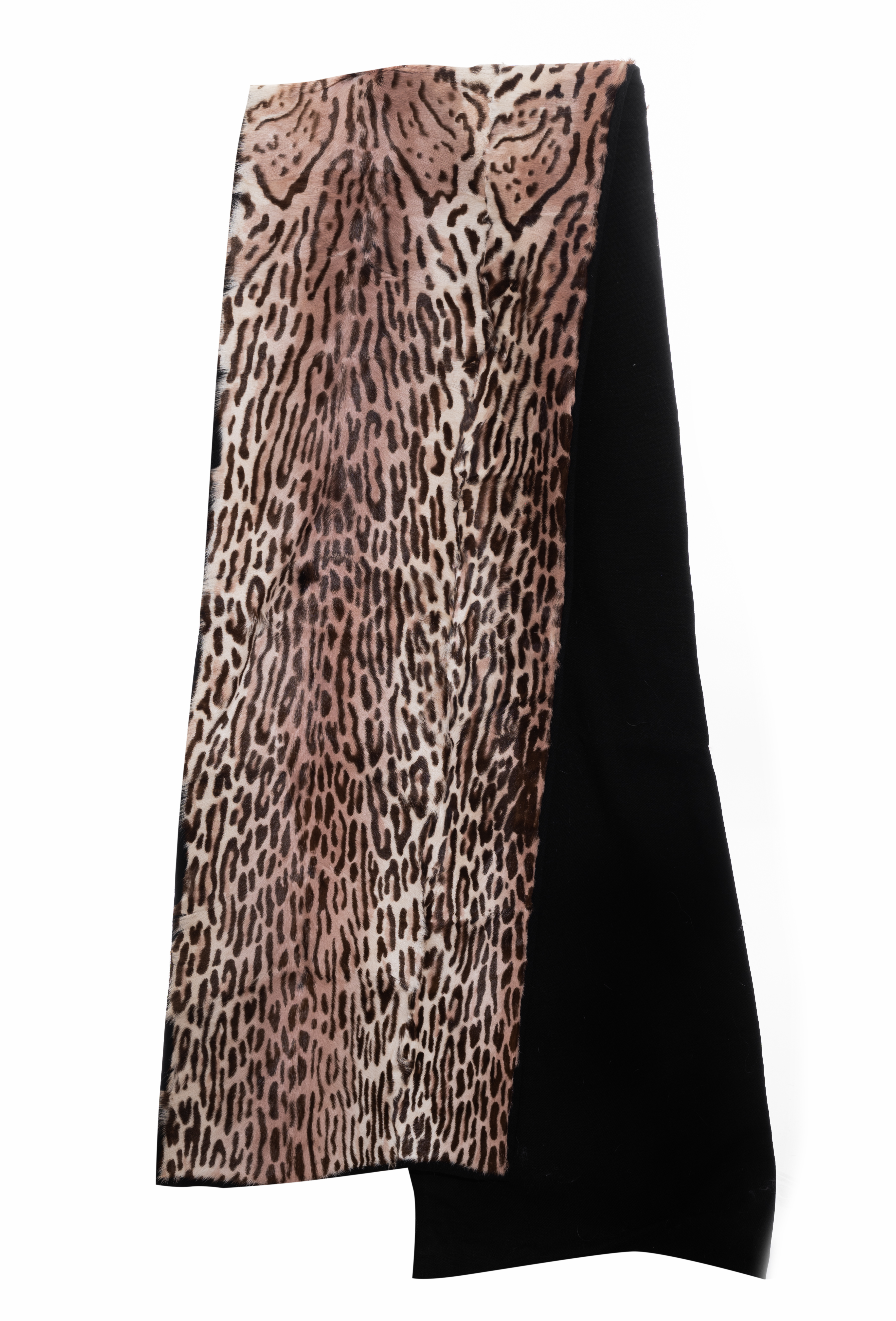 Stola in pelliccia di cavallino tinto ad effetto maculato, fodera in lana nera. Taglia unica.