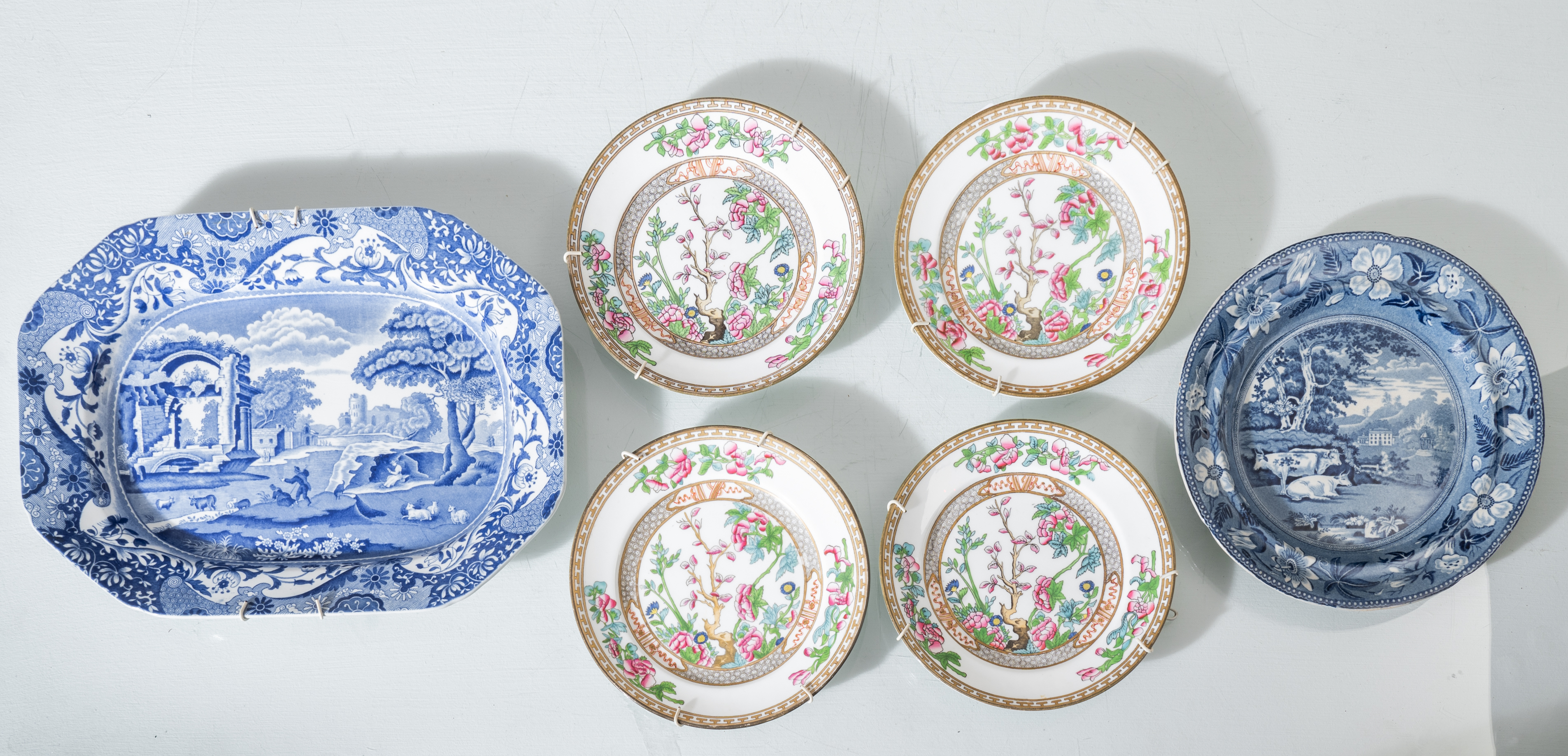 MANIFATTURA INGLESE XIX SECOLO, Vassoio, piatto e 4 piattini
