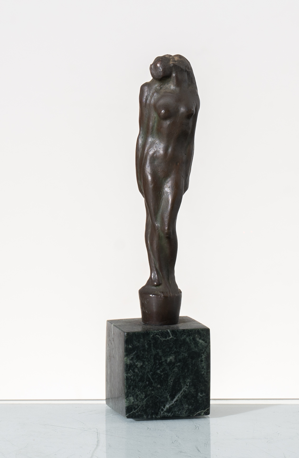 Scultura in bronzo, fusione a cera persa, base in marmo verde delle Alpi