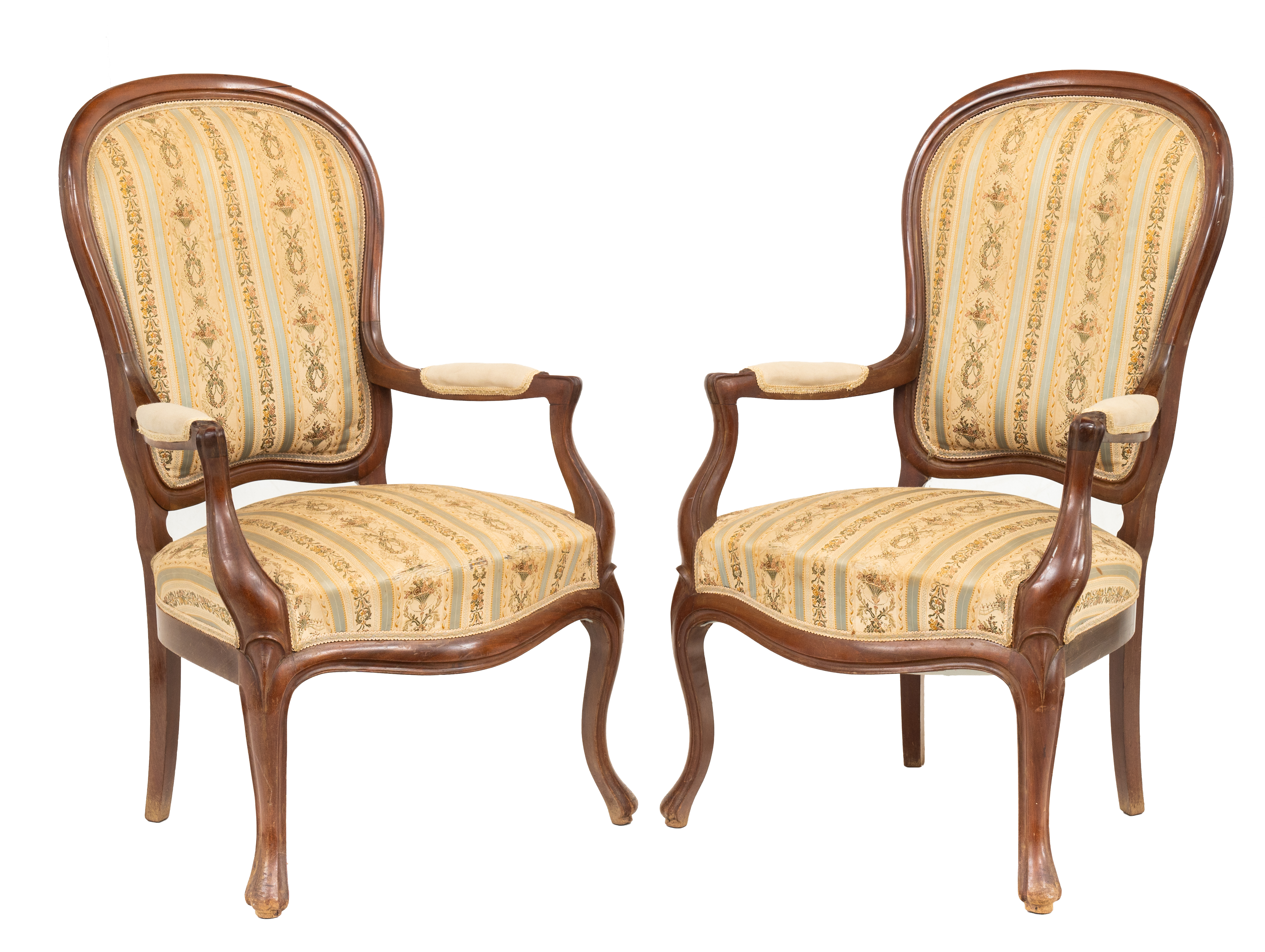 Coppia di poltrone stile Luigi Filippo in legno di mogano (usure).