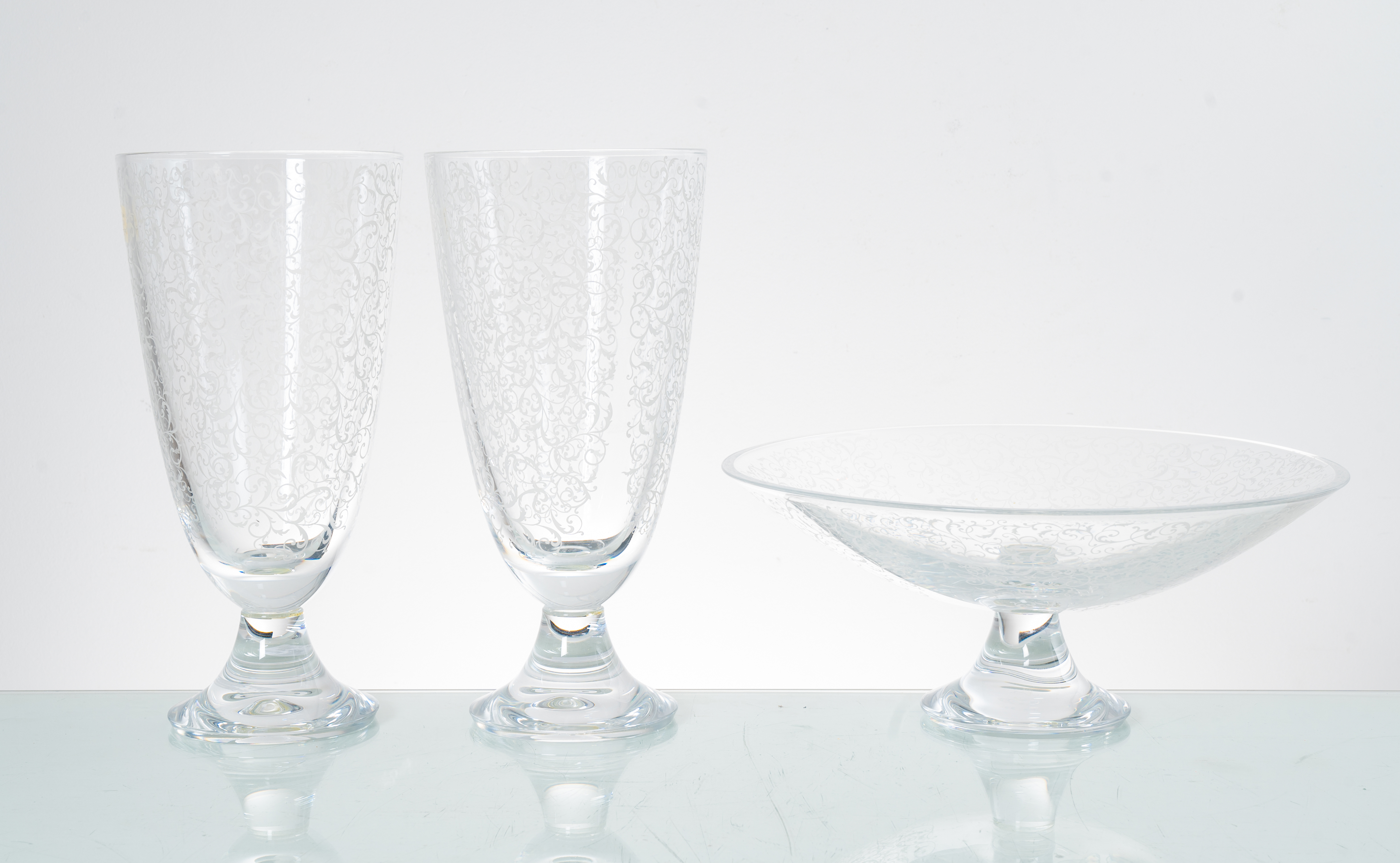 MAN. FRANCESE SECONDA METÀ XX SECOLO, Centrotavola e due vasi