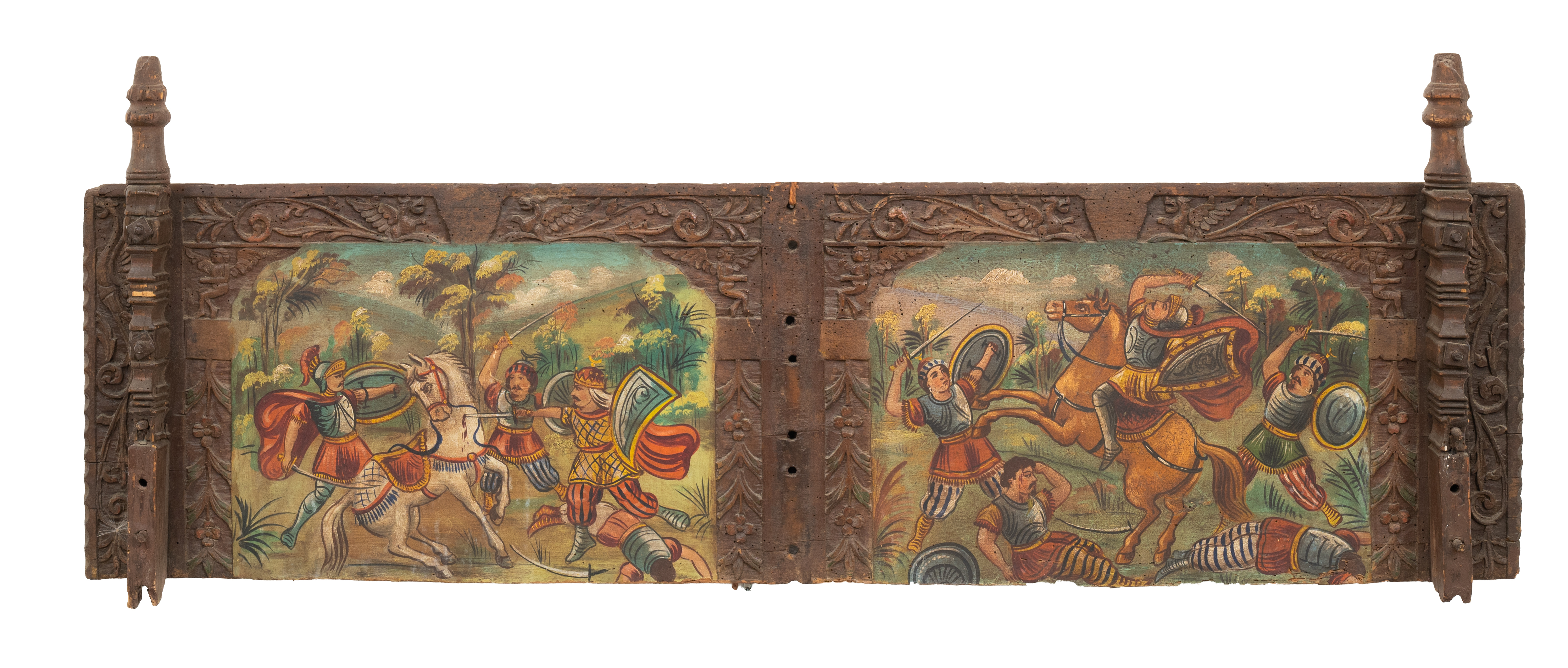 Sponda di carro dipinta a mano raffigurante "Lotta tra paladini".