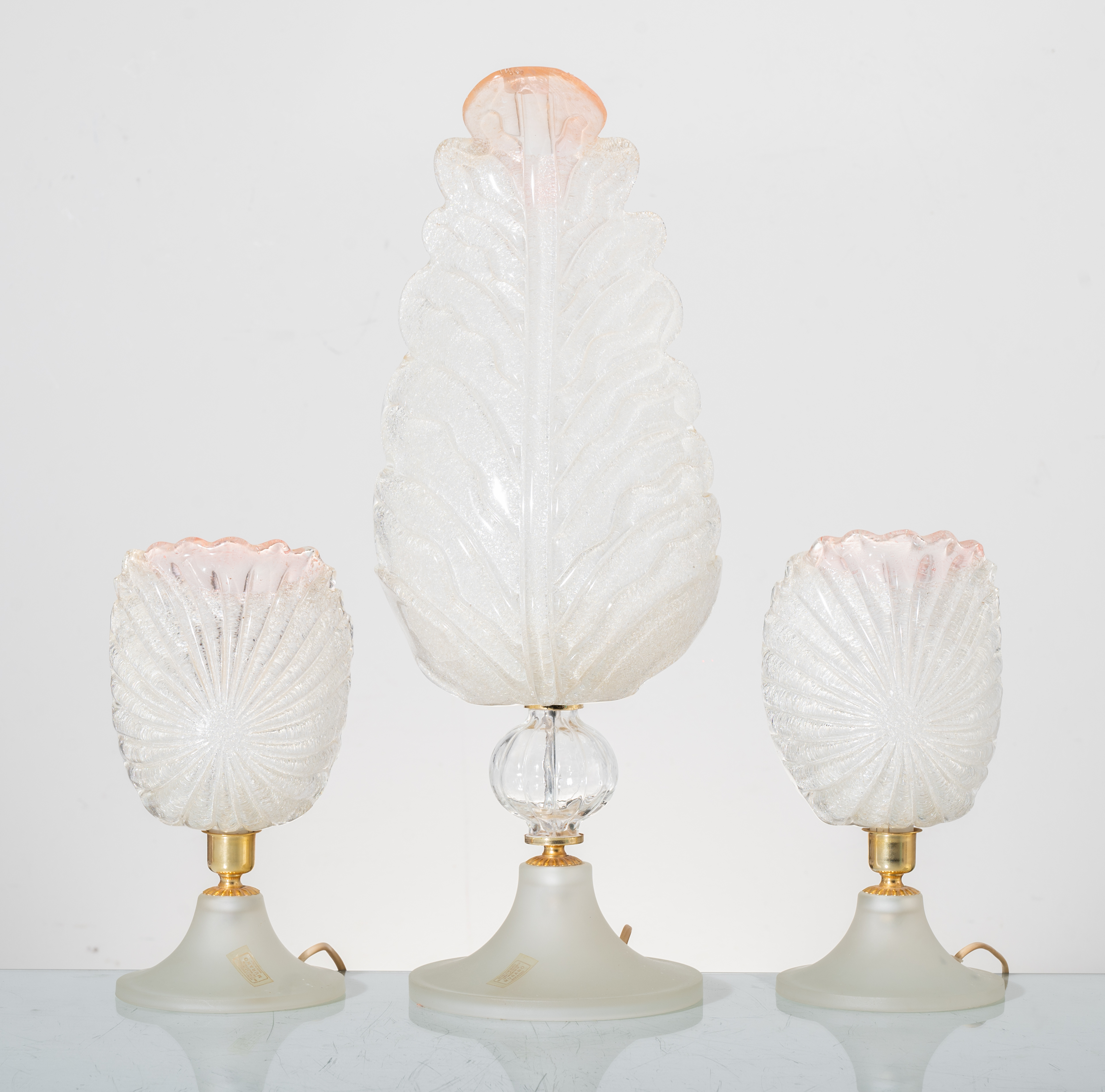 Trittico in vetro composto da lampada da tavolo e due abat-jour.