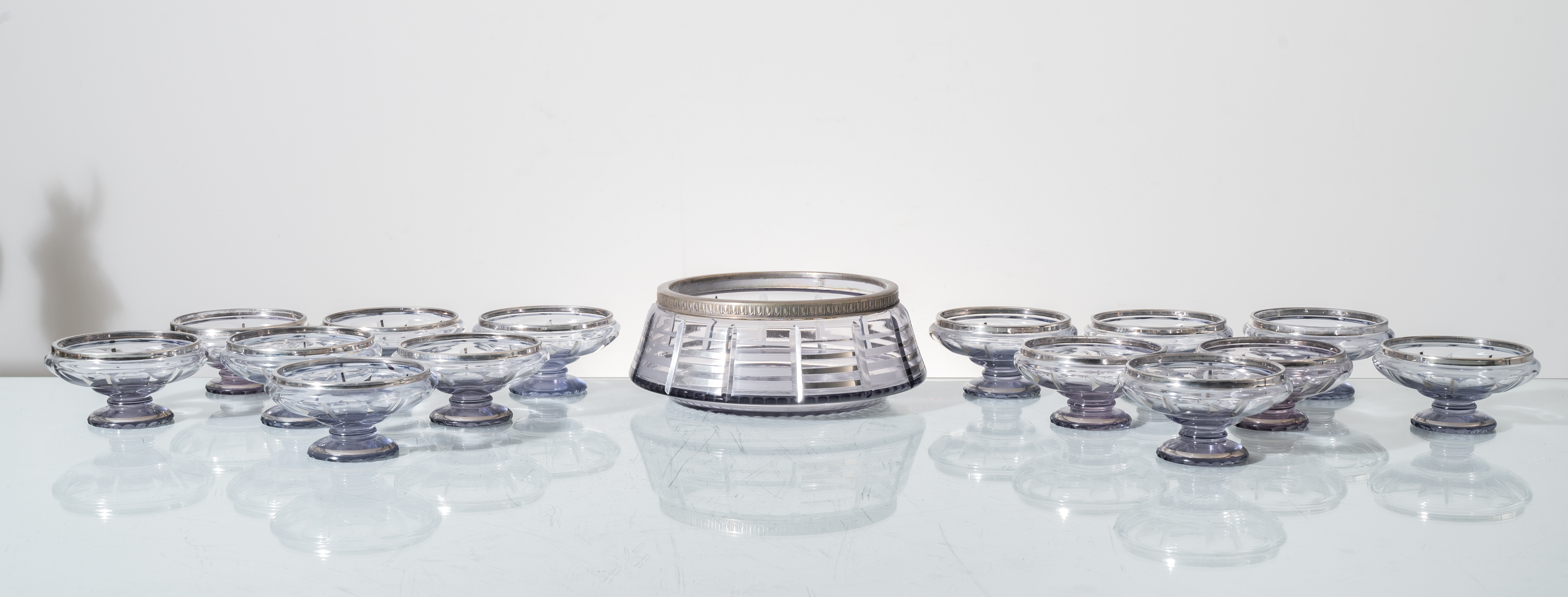 Servizio macedonia in vetro composto da porta macedonia e quattordici coppette.