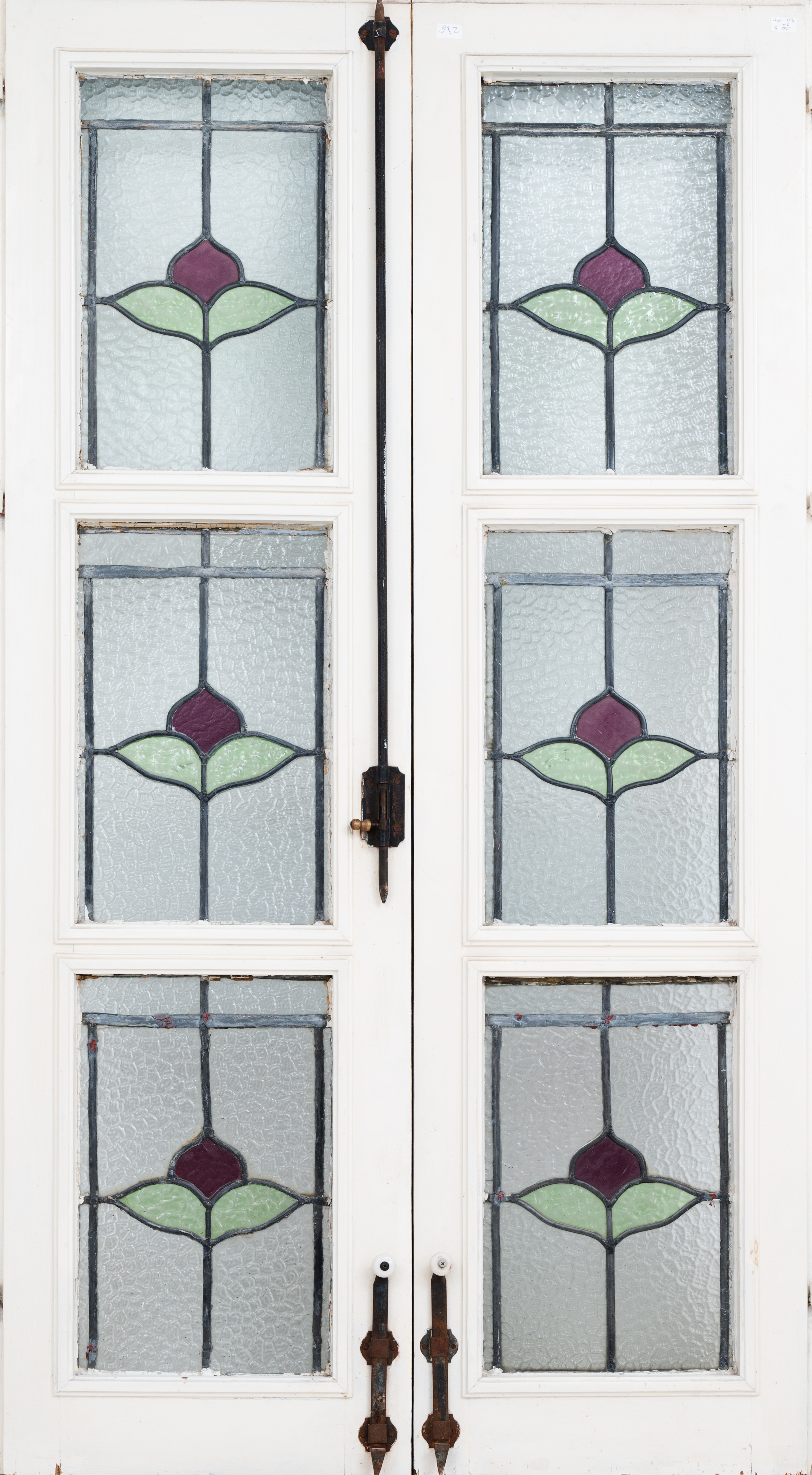 Coppia di finestre in legno con vetri cattedrale dei primi del '900.