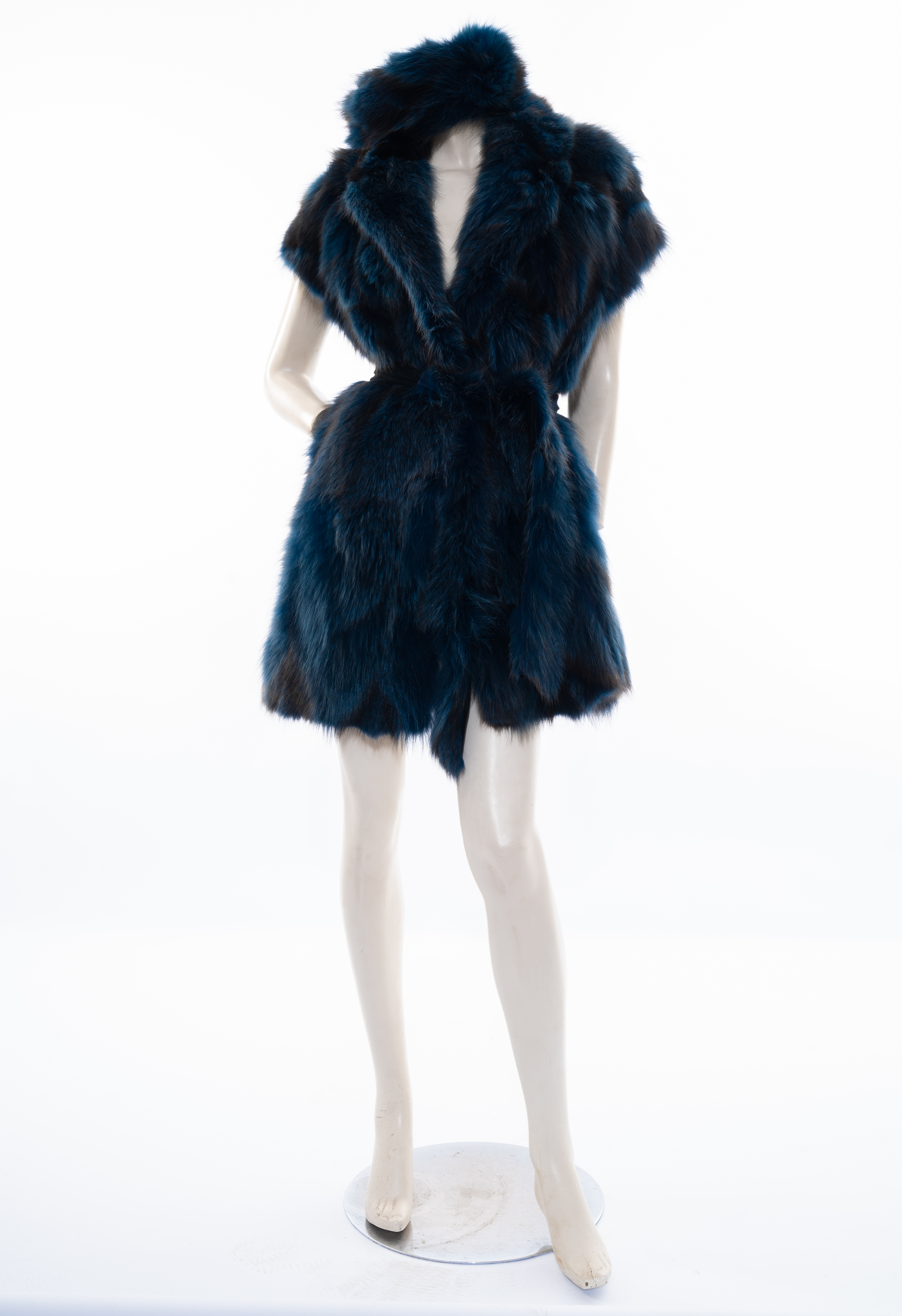 Smanicato in pelliccia di volpe blu, chiusura frontale, cintura in pelliccia. Taglia M.