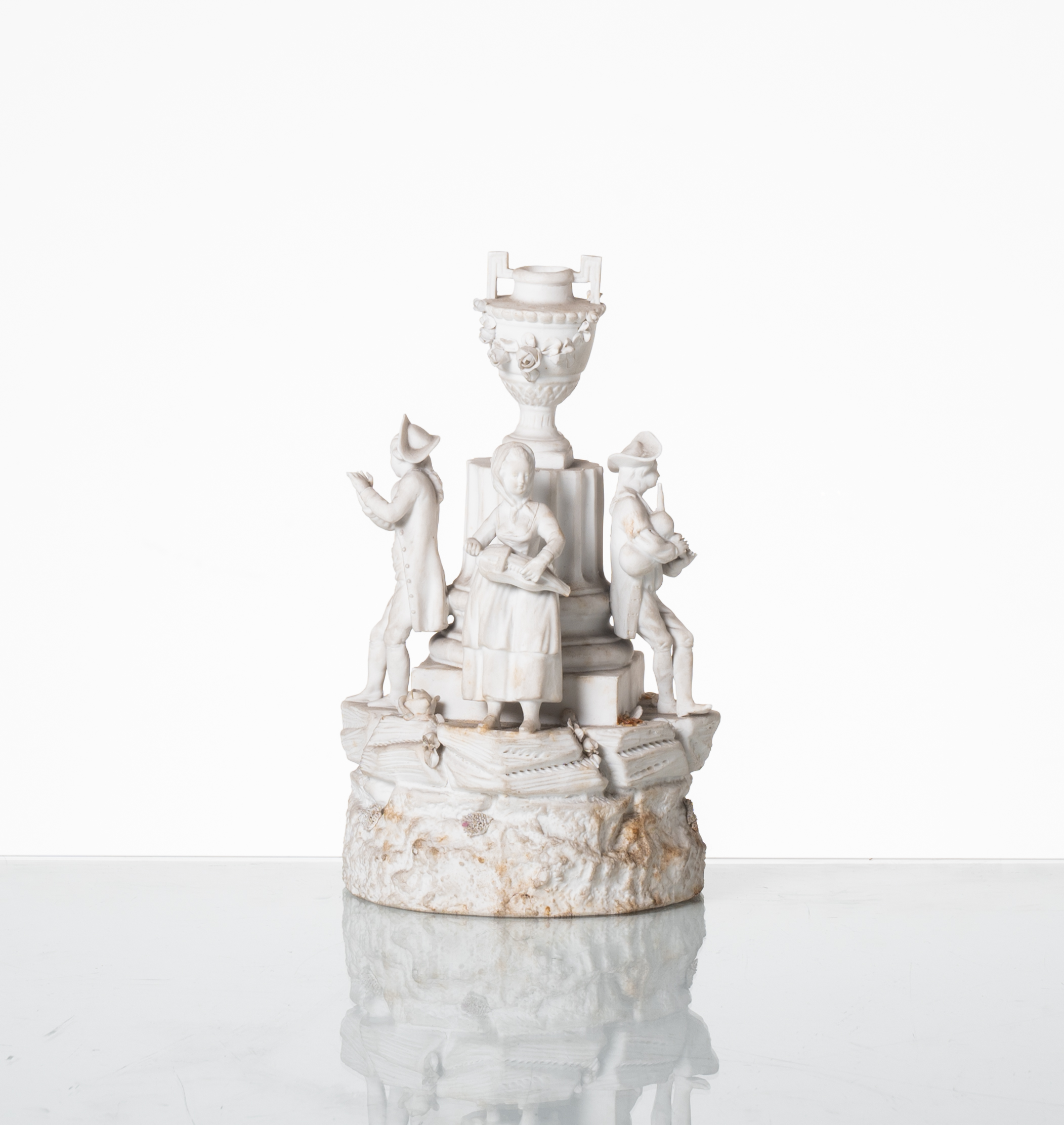Gruppo in biscuit di Sevres raffigurante "Colonna con vaso e figure" (difetti e mancanze).