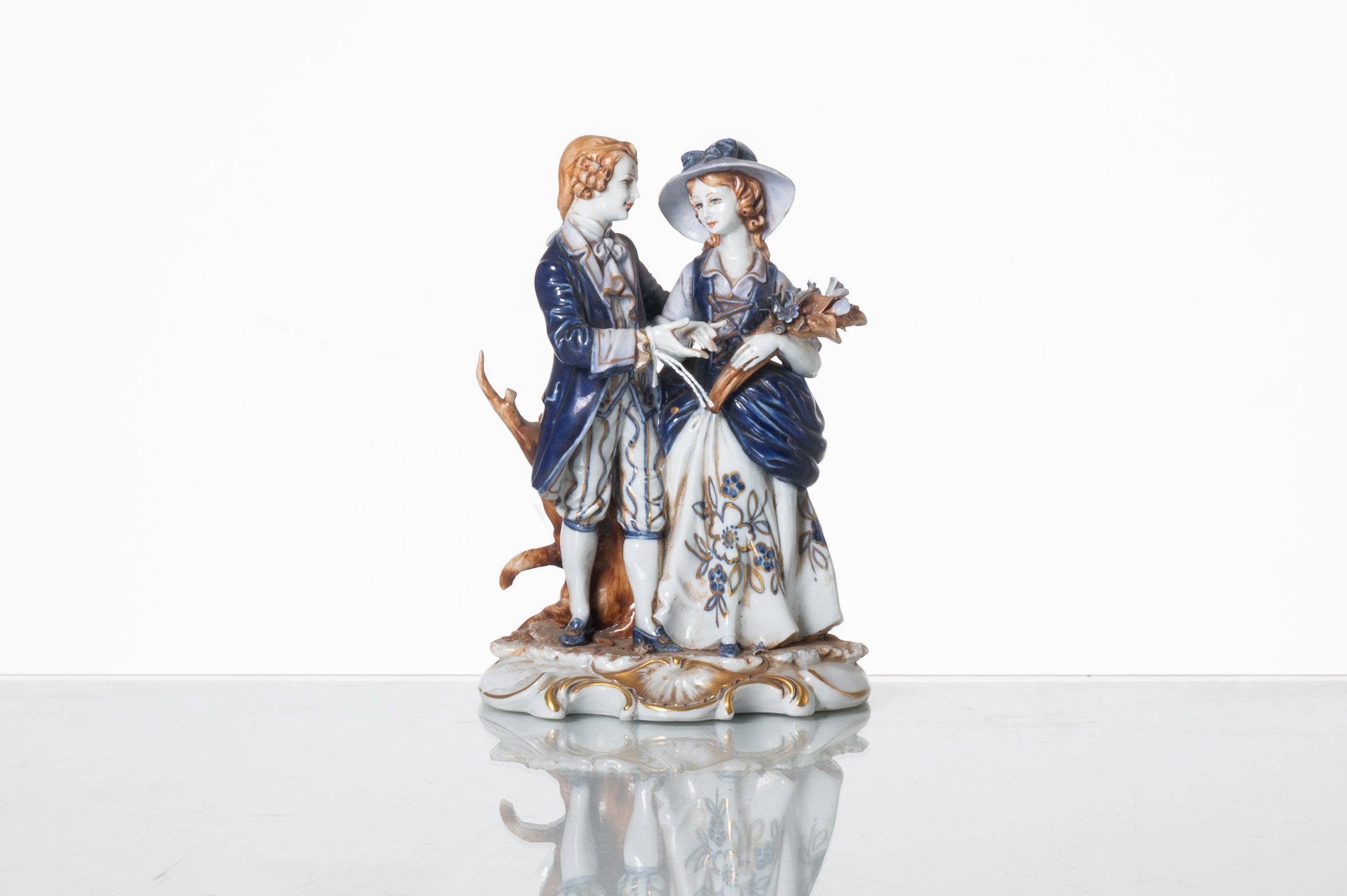 Gruppo in porcellana raffigurante "Scena galante" (usure).