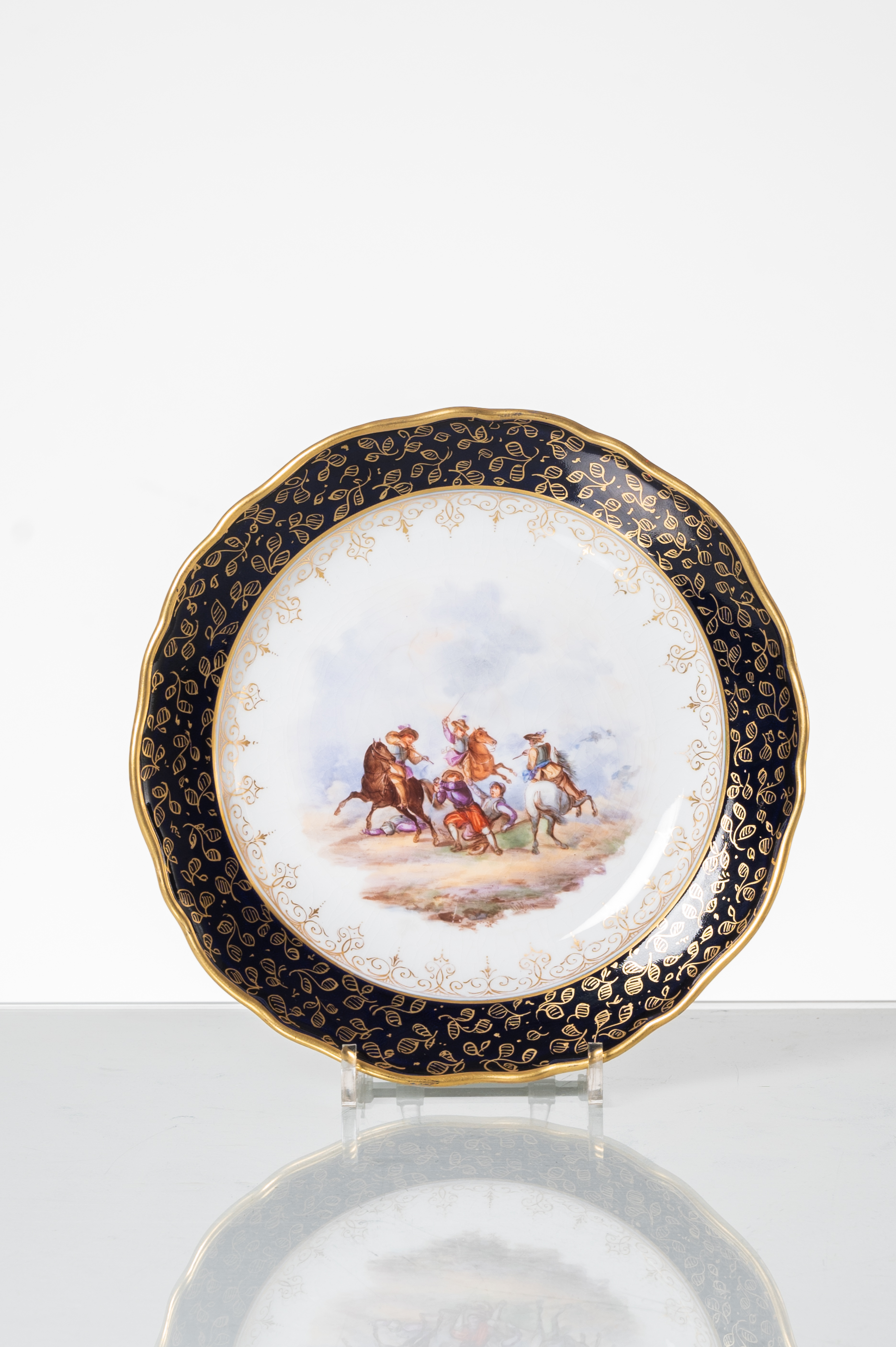 Piatto in porcellana smaltata e dipinta raffigurante "Scena di battaglia".
