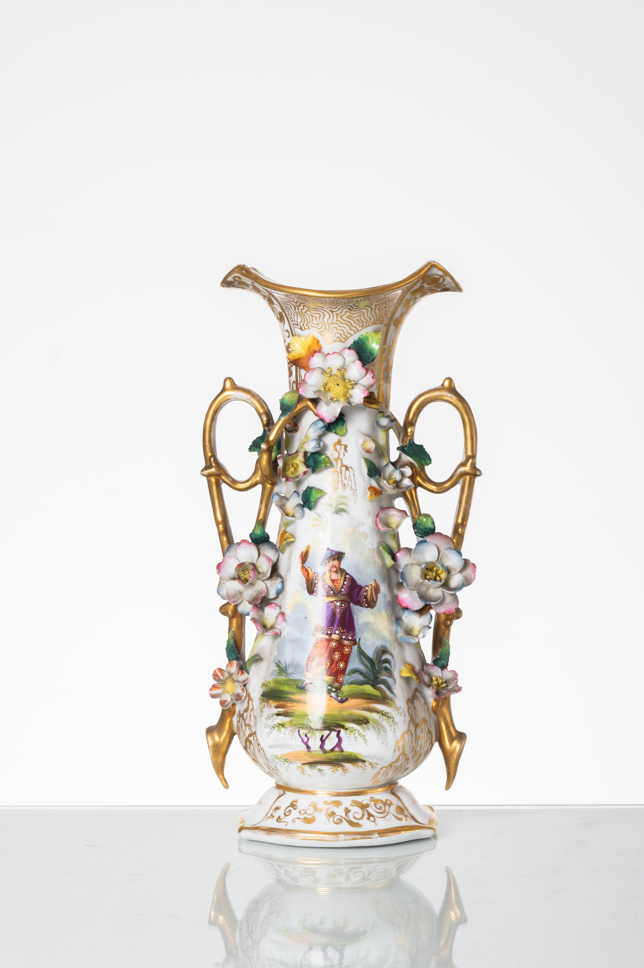 Vaso Luigi Filippo in porcellana decorata a motivo floreale e dipinta a mano raffigurante "Figura orientale".