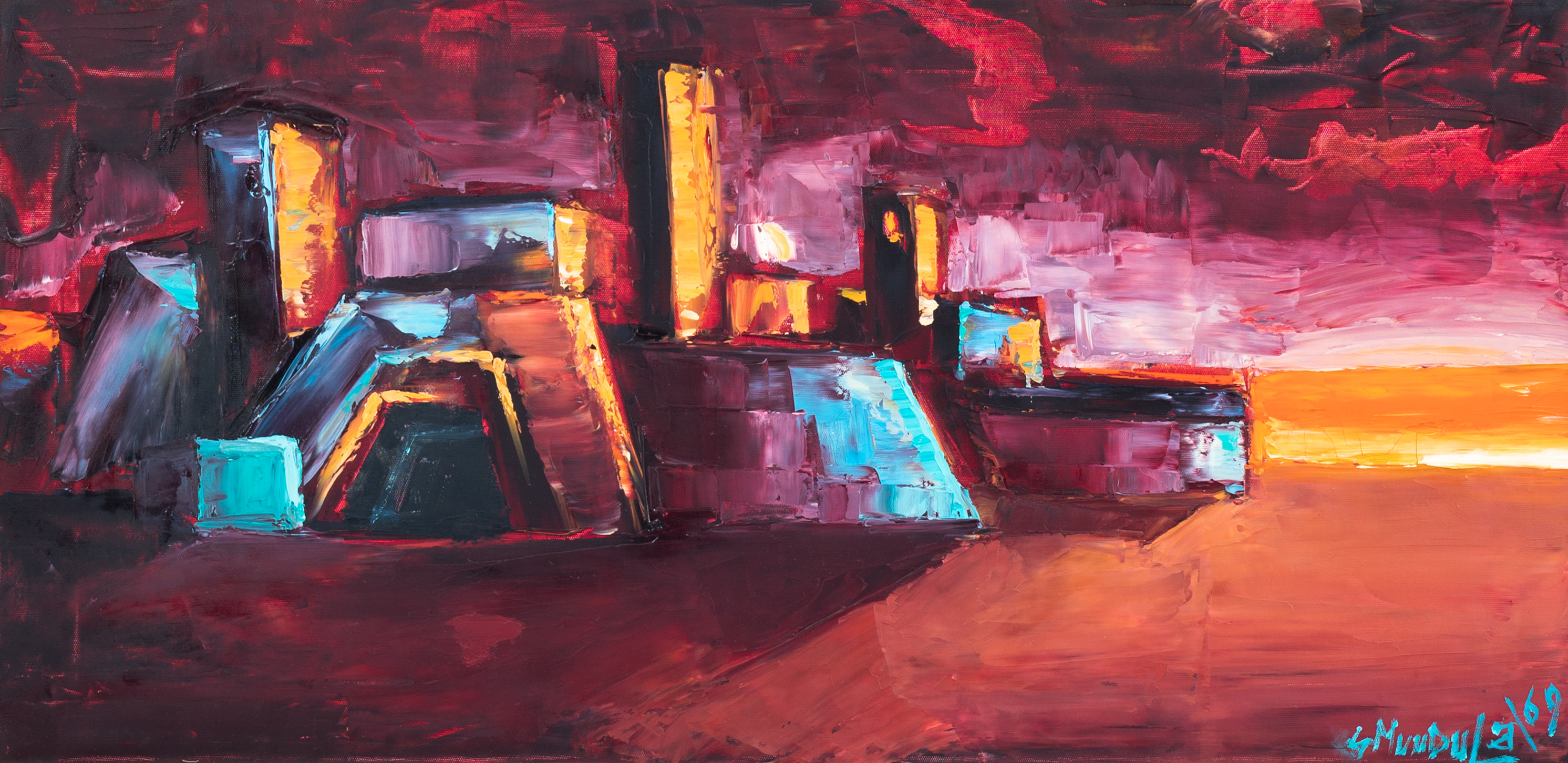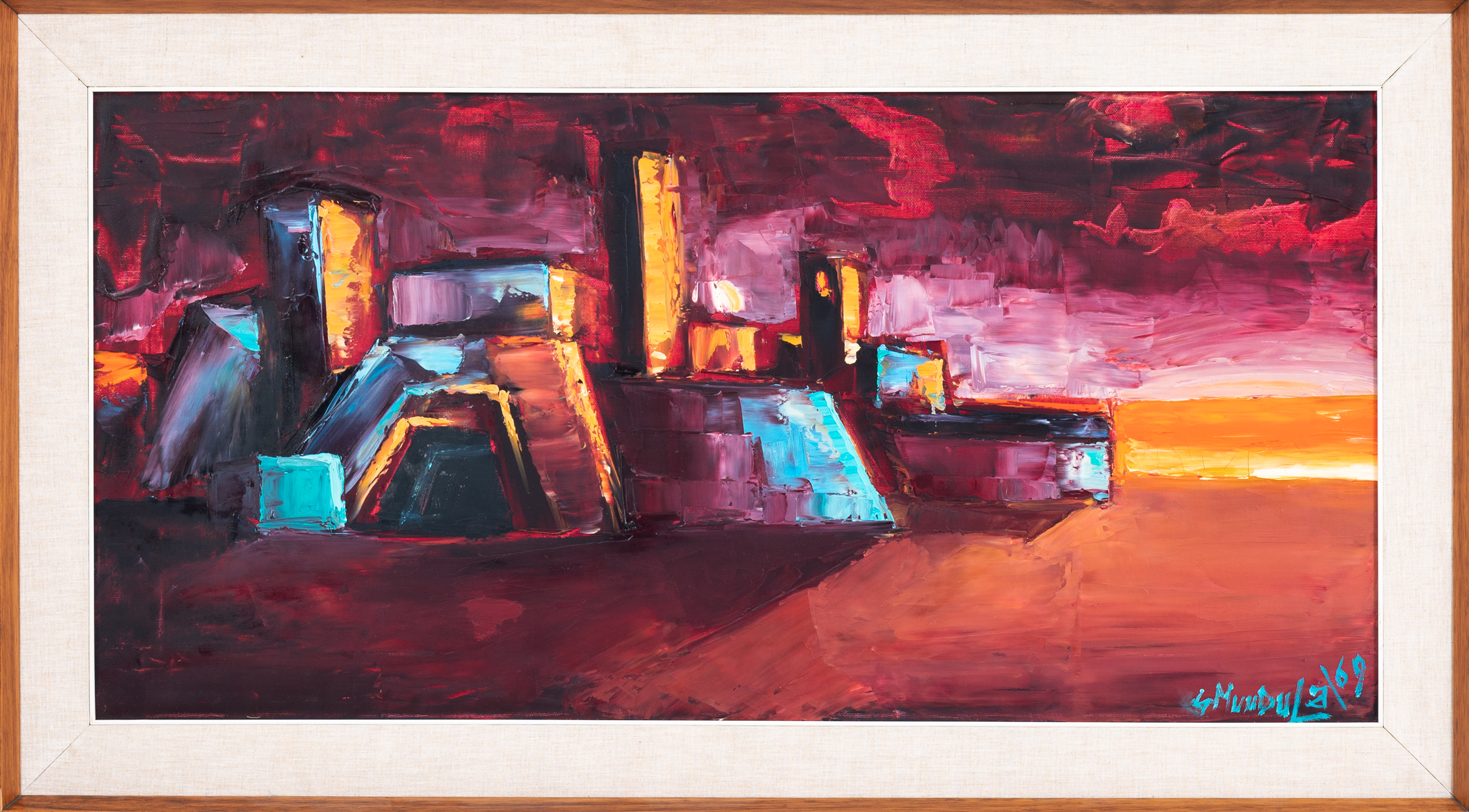 GIOVANNI MUNDULA, Città metafisica, Olio su tela