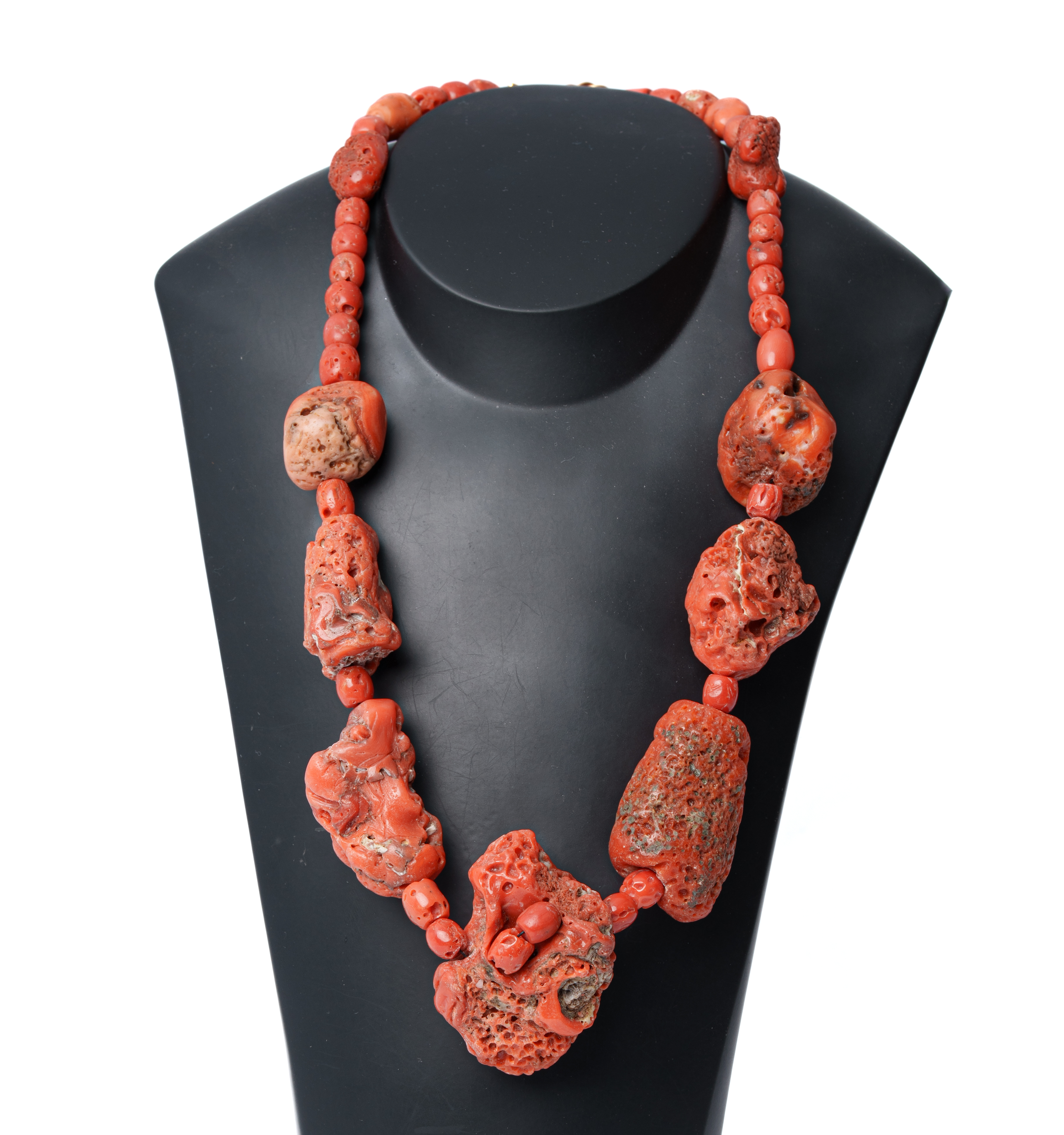 COLLANA in corallo spugnoso, chiusura in oro giallo 18 KT (g. 207).