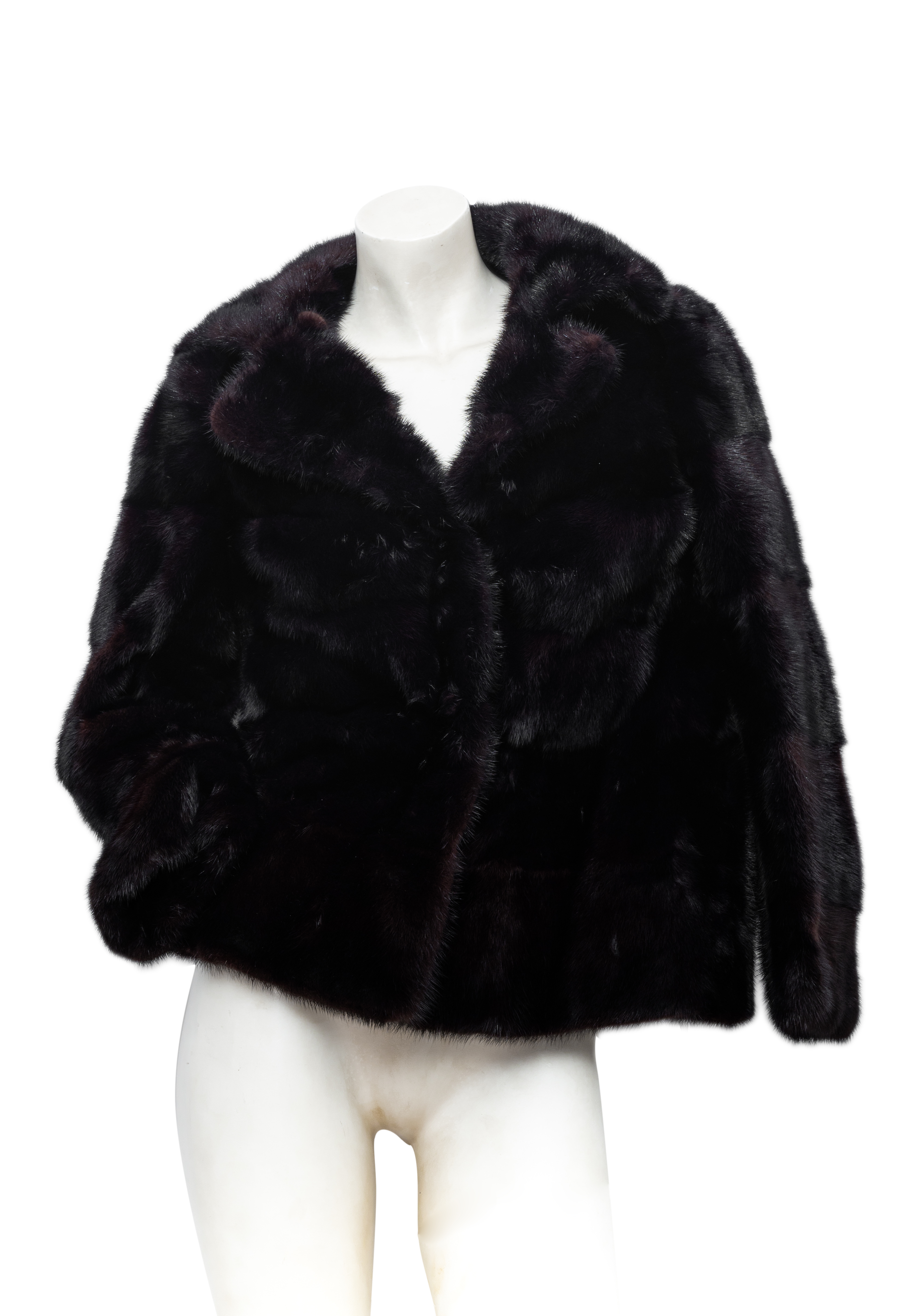 Giacca in pelliccia di Visone Blackgama, collo monopetto, chiusura frontale con ganci. Marchio di produzione. Difetti.