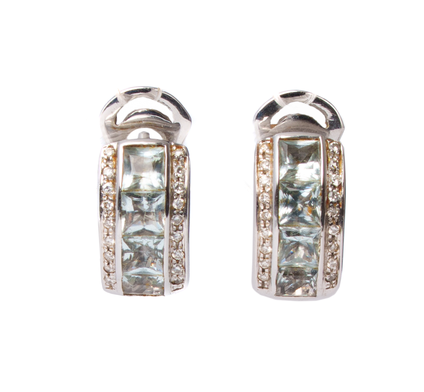ORECCHINI in oro bianco 18 KT con brillanti e acquamarina