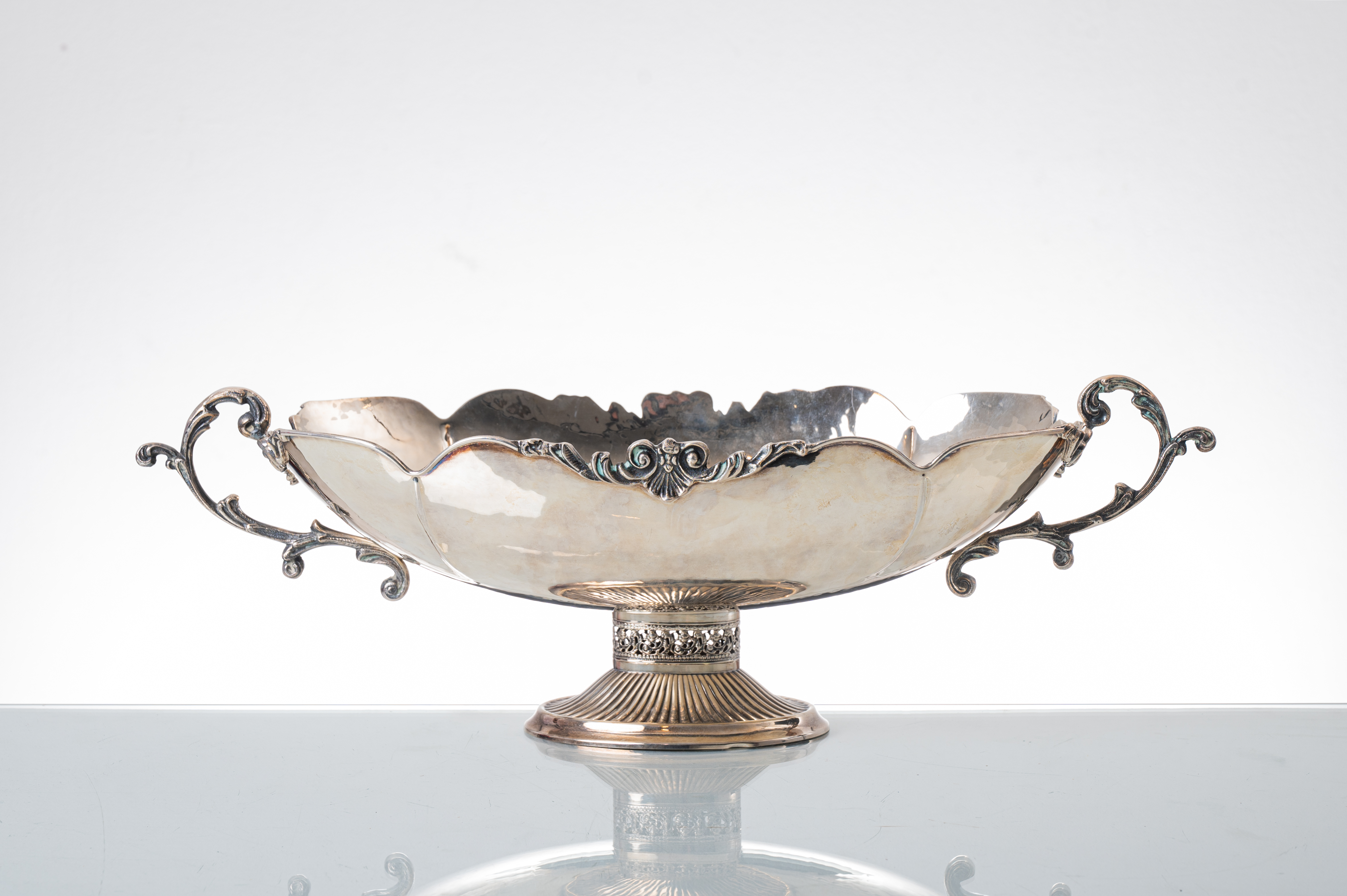 GIATTA con anse in argento sbalzato e traforato. Punzone argentiere 178 PA (g. 1331).