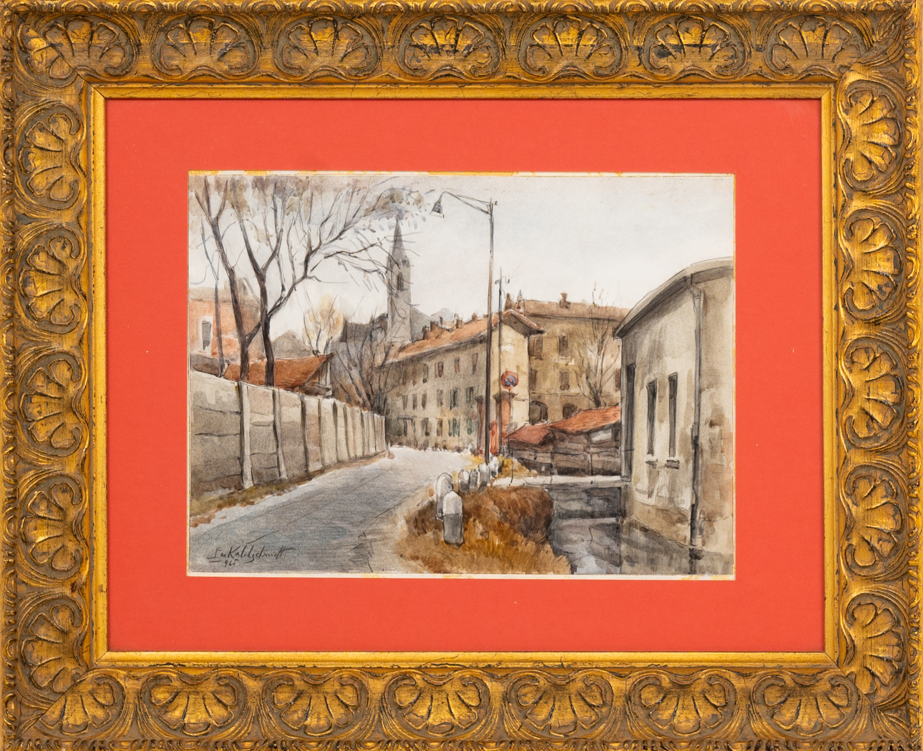 EMILIO KALCHSCHMIDT, Via Magolfa a Milano, Acquarello carta