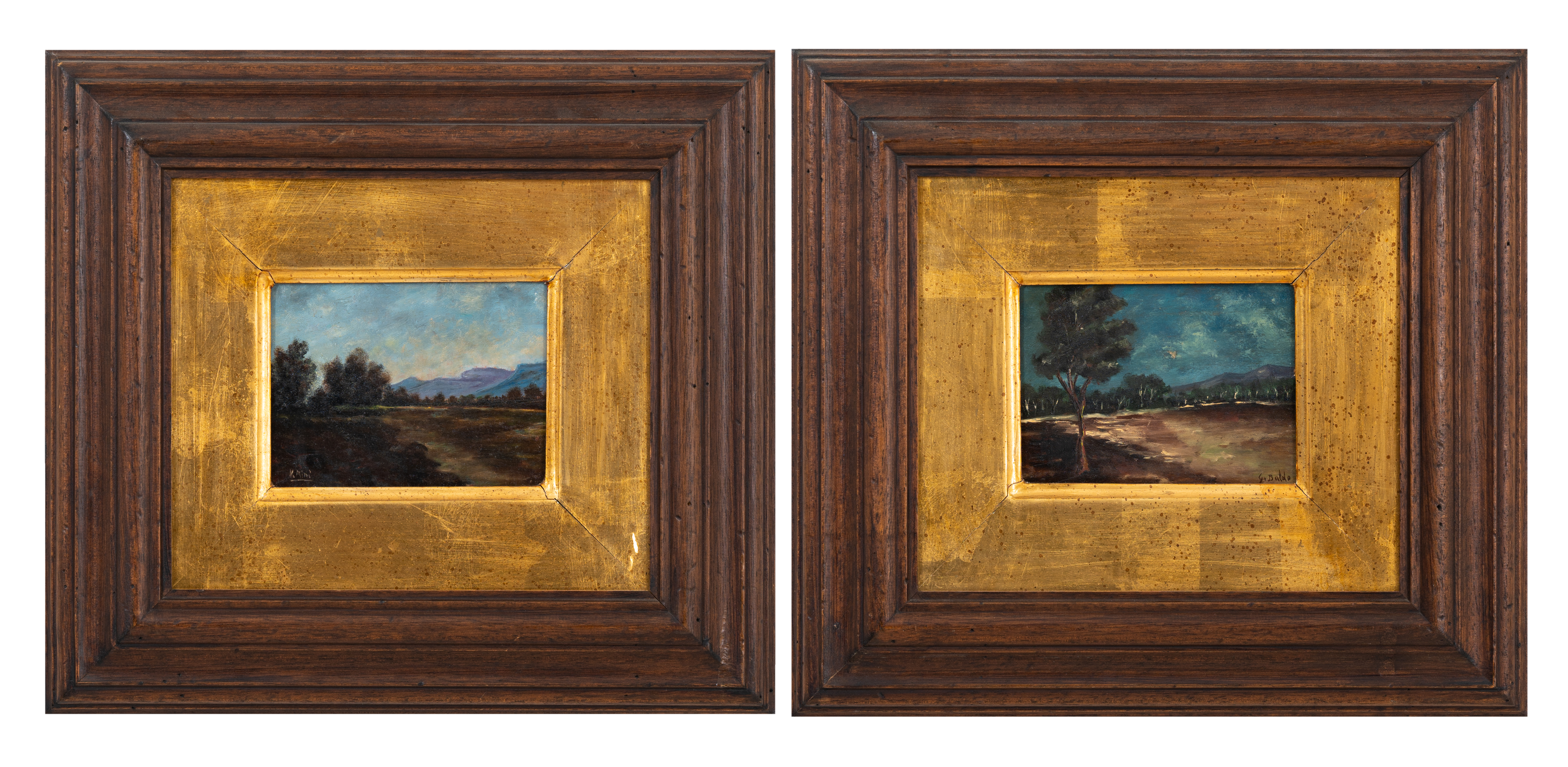 PITTORE DEL XX SECOLO, Paesaggi, Coppia di oli su tavoletta