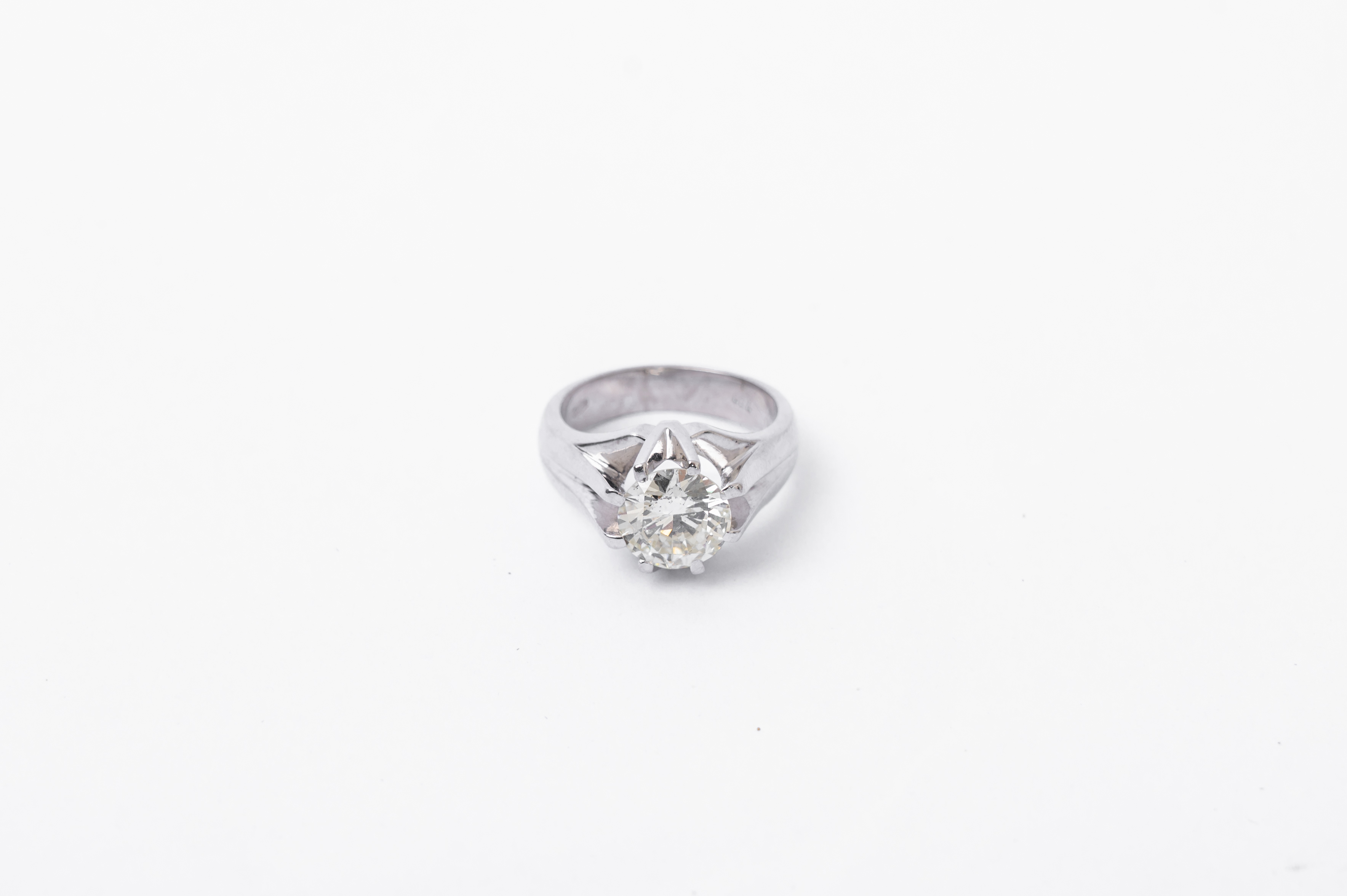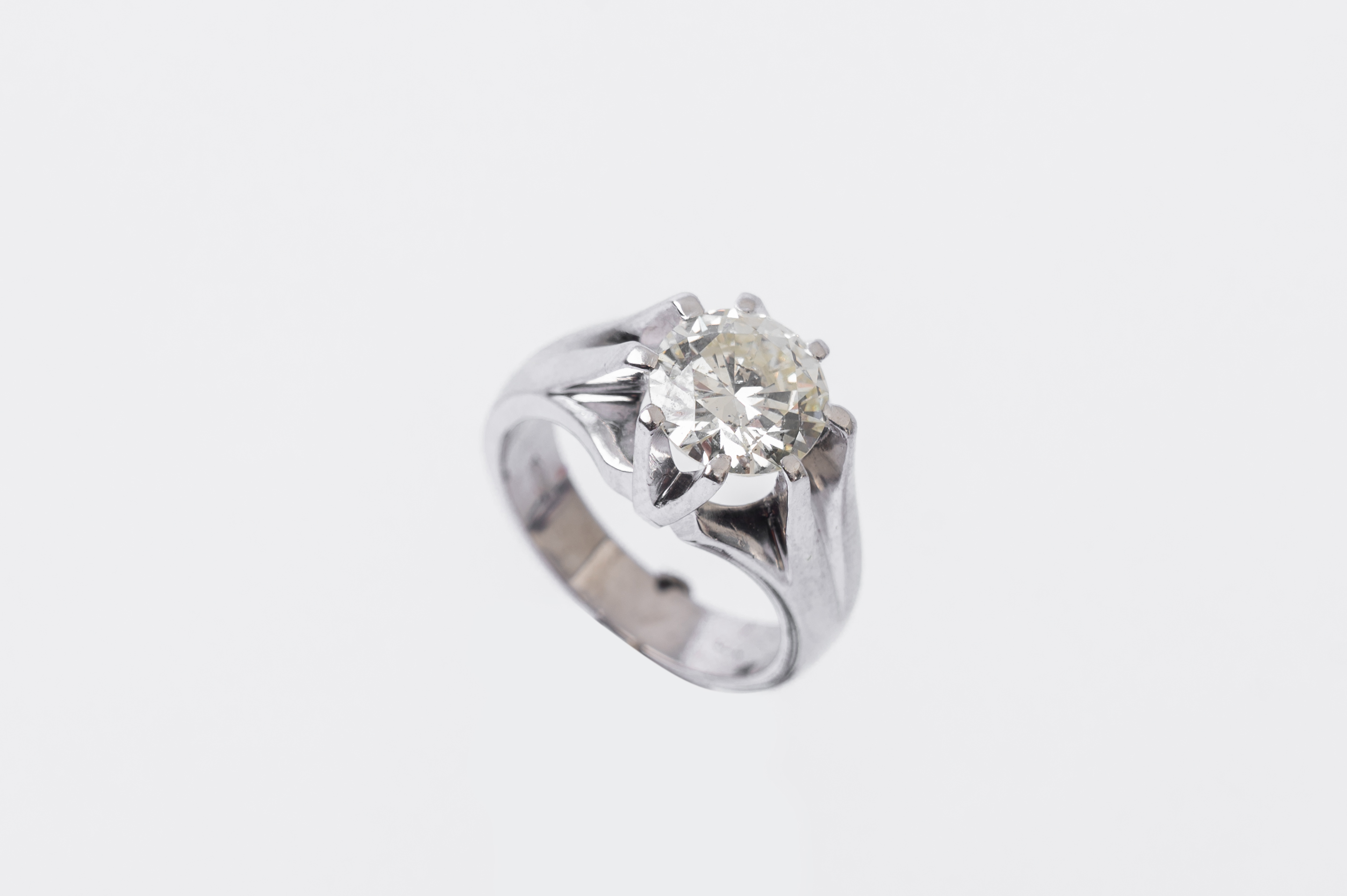 ANELLO da uomo in oro bianco 18 KT con diamante taglio brillante rotondo ct. 2,10 H/I COLOR SI (g. 8.50).