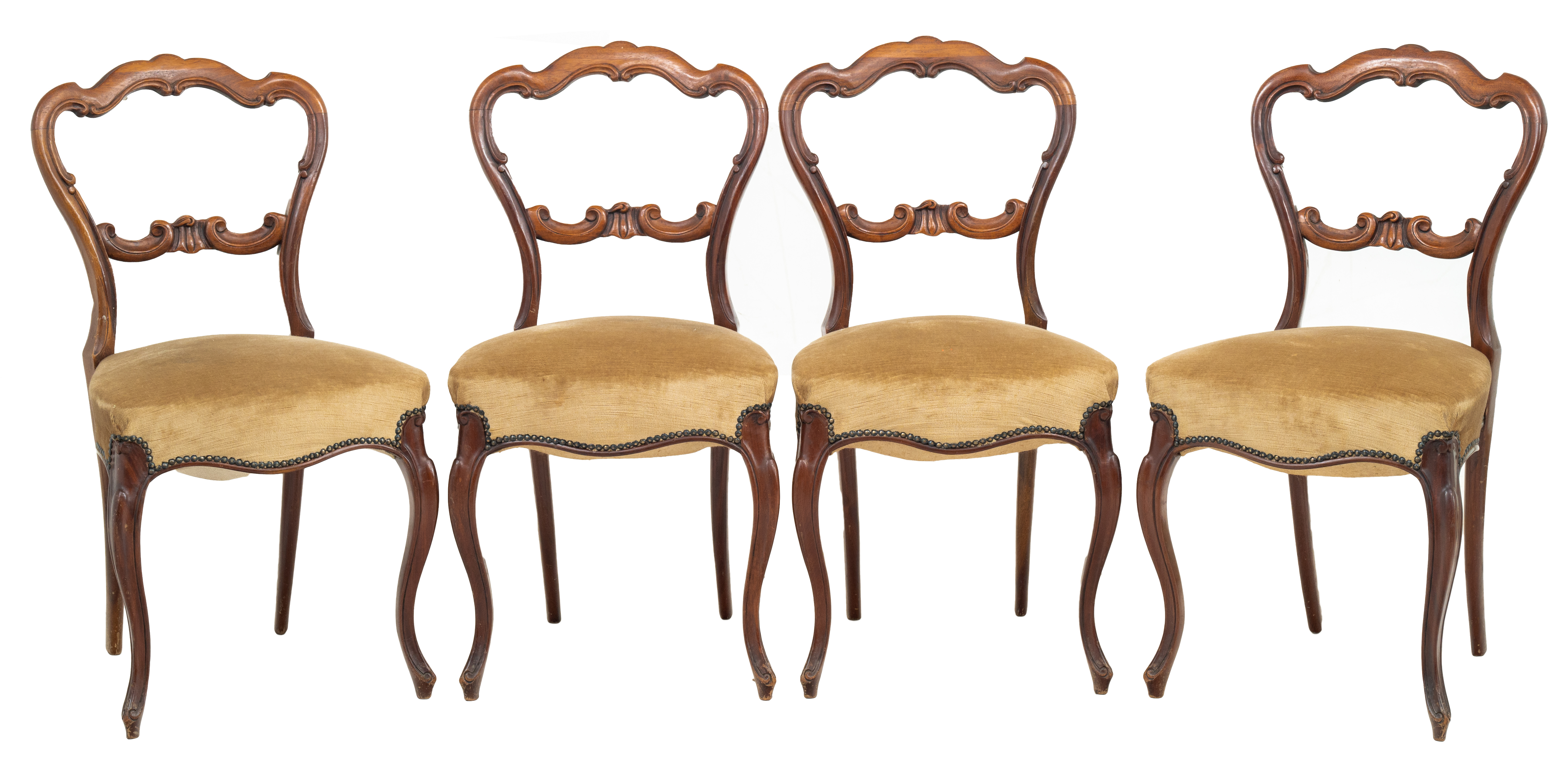 Quattro sedie vittoriane in legno di mogano.