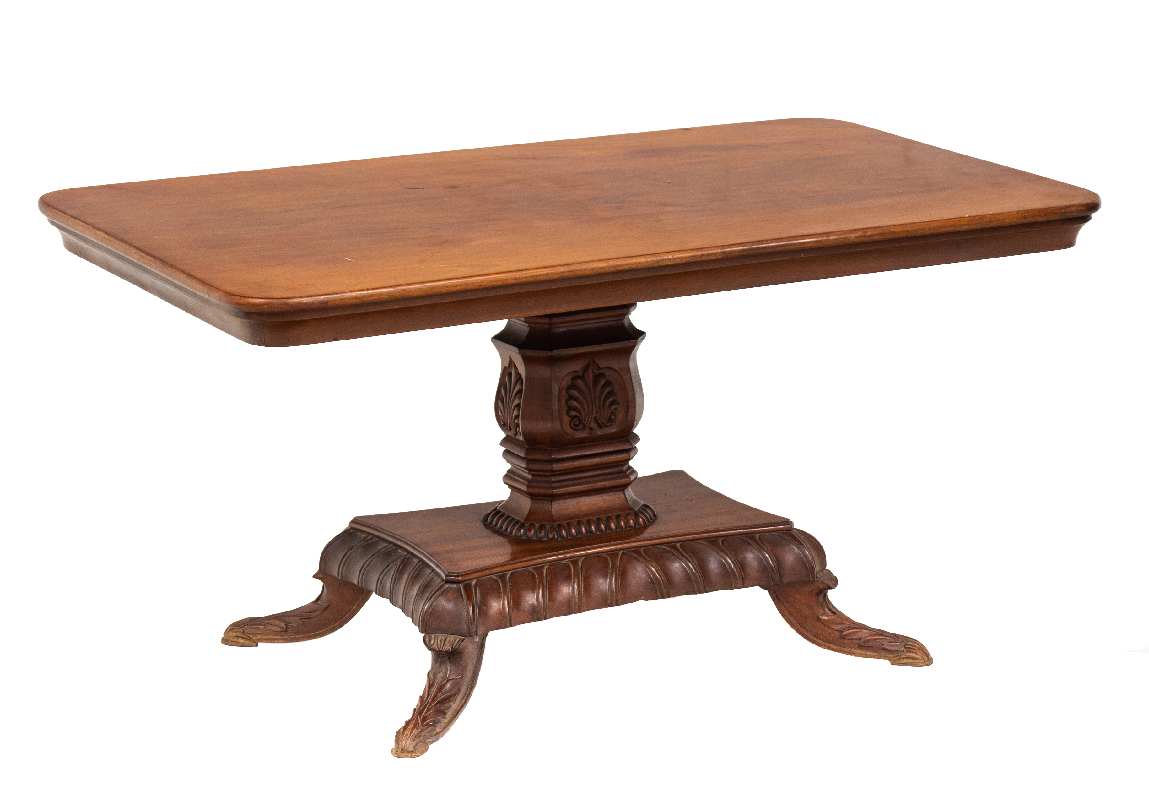 Tavolino da salotto stile Impero in legno di mogano (restauro ed usure).